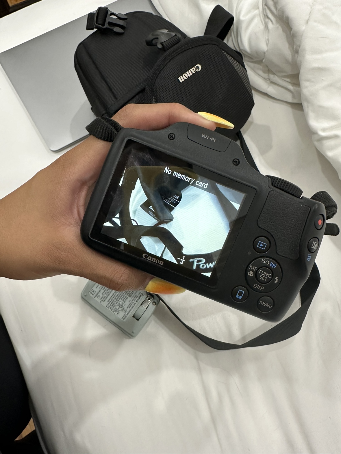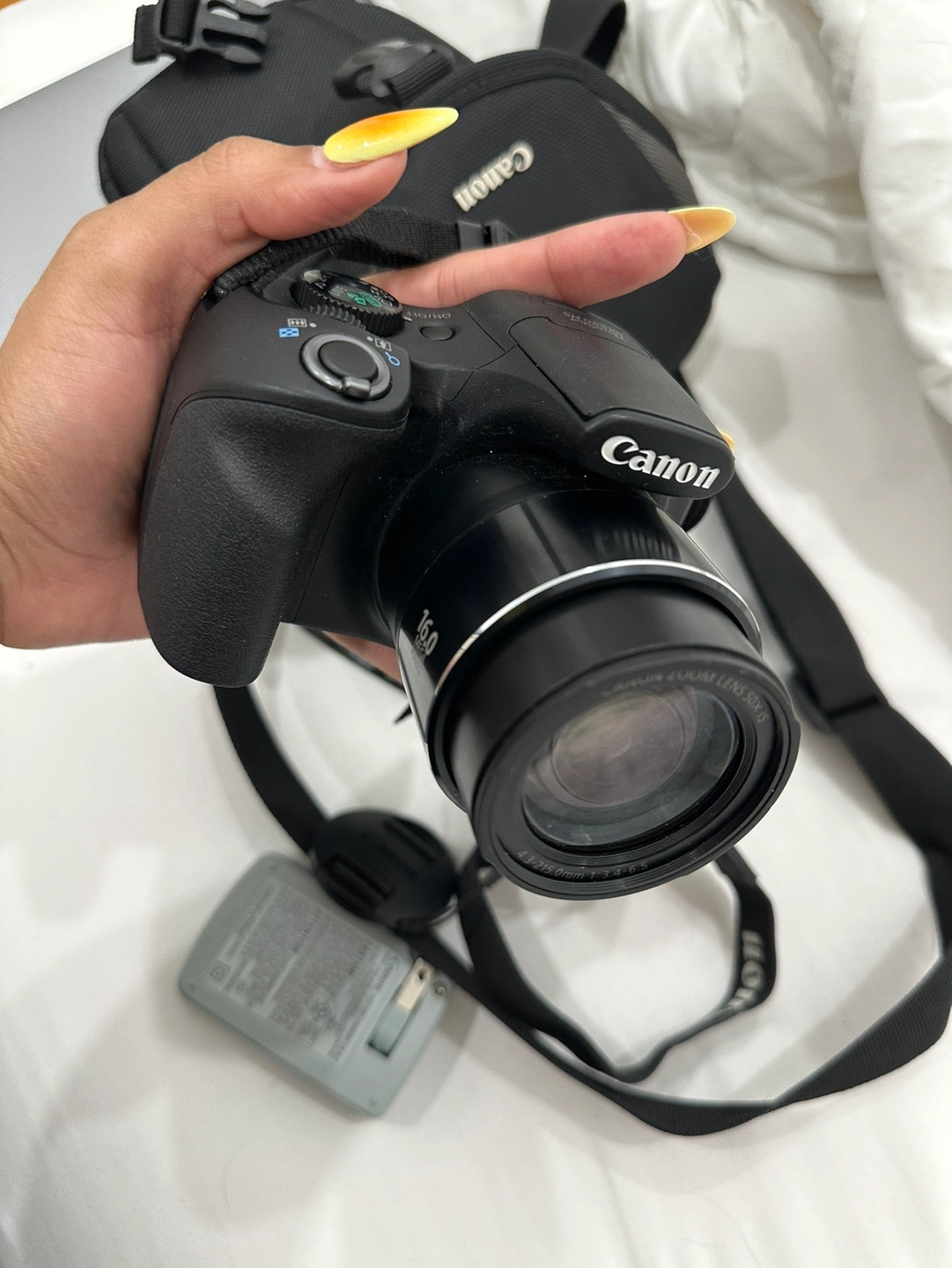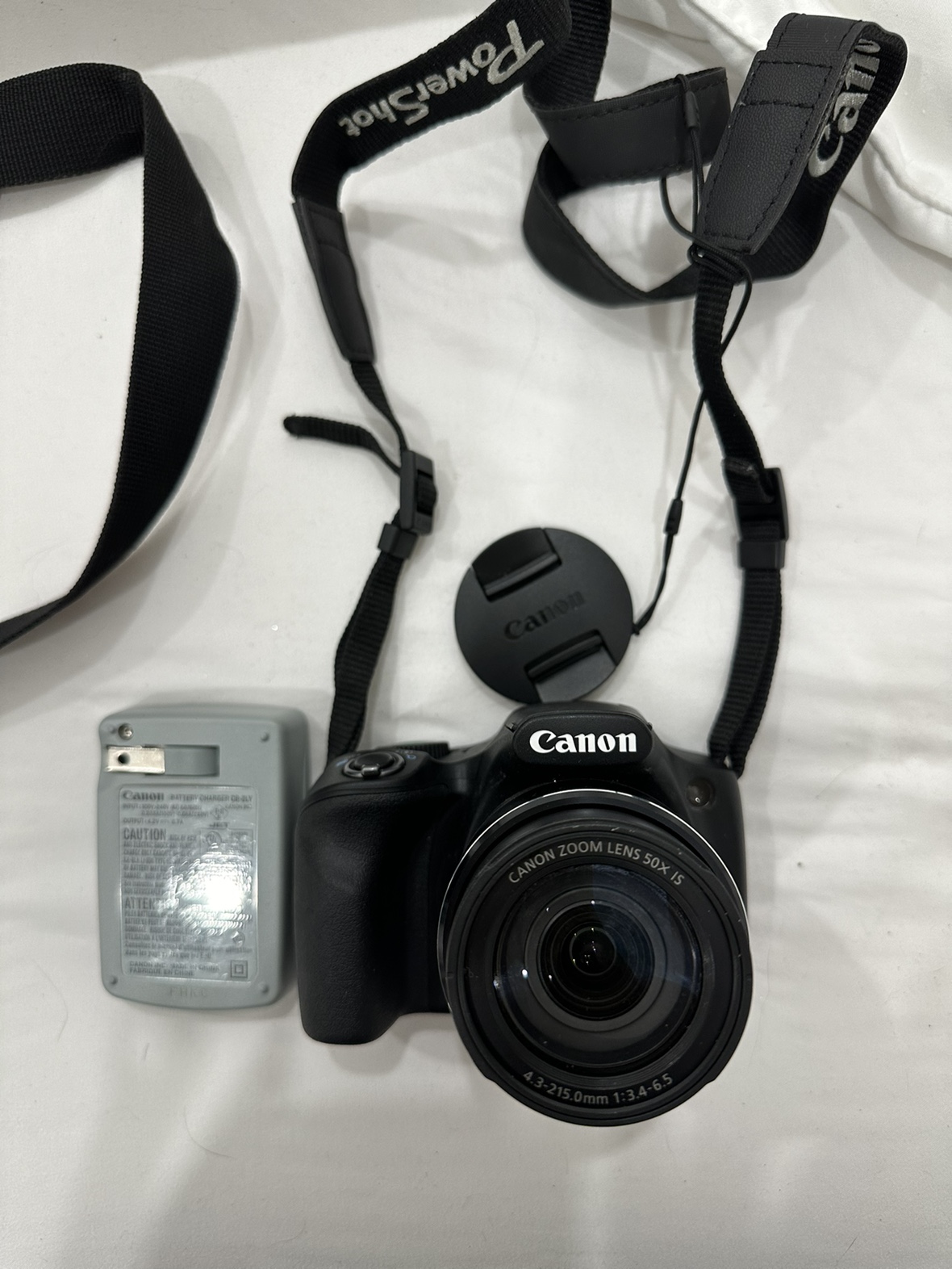 This camera comes with a case, strap, and a battery. The lens is 30x and the screen is 3.0 inches. The camera has built in Wi-Fi and is in good working order.