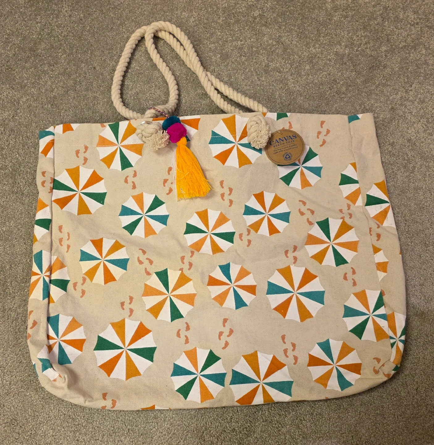 10I'm selling cute canvas tote bag! It's perfect for the beach or everyday use. It features a fun umbrella design and sturdy rope handles, making it both stylish and practical. $5.00 each. Pick up in Naperville near naper blvd and 87th street or near downtown Naperville off of Chicago and Charles