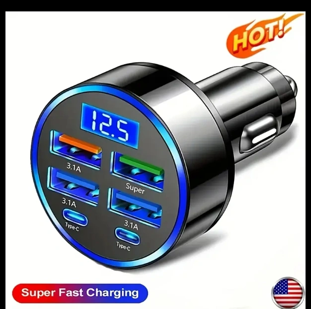10This car charger adapter features multiple USB ports for charging several devices at once! It includes both USB-A and USB-C ports, and a digital display to show the voltage. It's designed for fast and stable charging and is durable to prevent it from falling off while in use