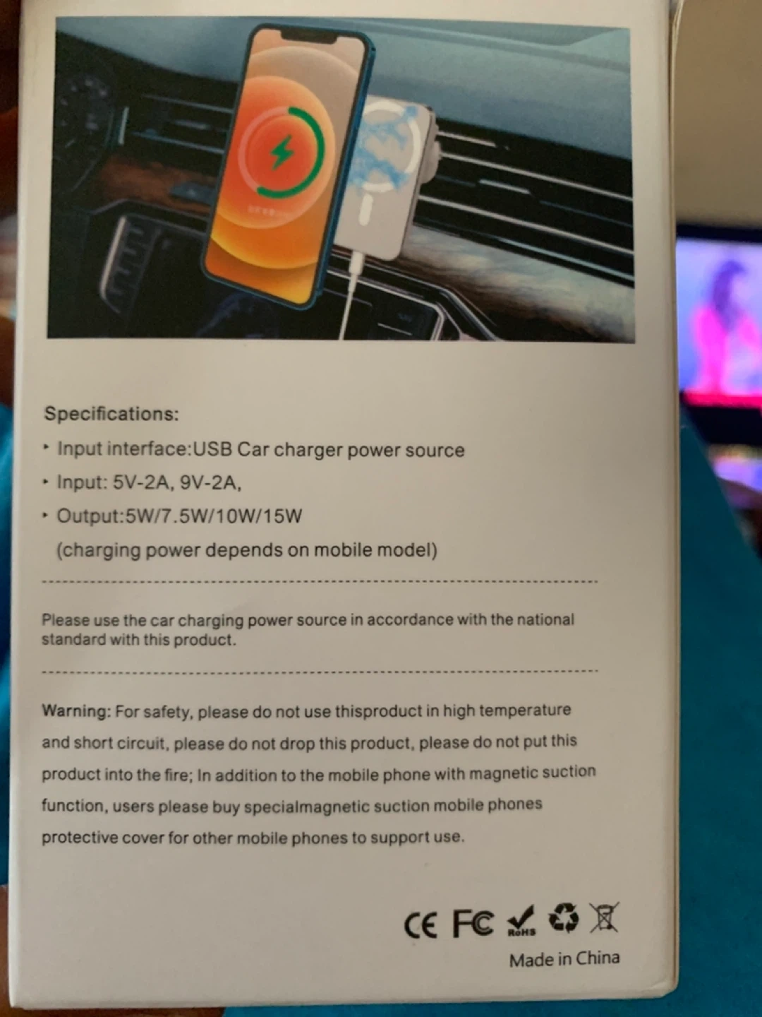 Selling a car magnetic wireless charger! This charger features fast charging capabilities. It uses a USB car charger power source and supports 5V-2A, 9V-2A input, with an output of 5W/7.5W/10W/15W. The box is included
