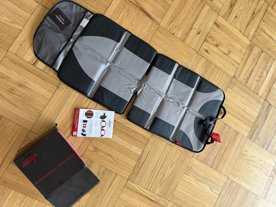 Brand new - in it’s box. Lusso Gear Car Seat Protector for Baby Car Seat - Thick Padding - Seat Protector Under Baby Car Seat - Gray / Black Waterproof Baby Car Seat Protector - Non-Slip Padded Backing