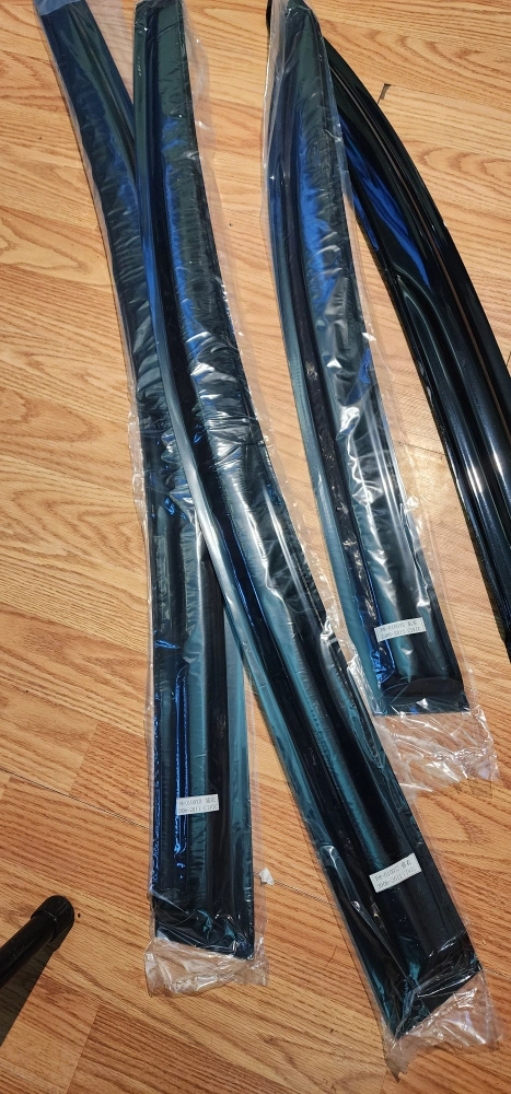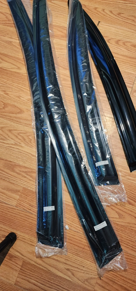 Selling a set of car window visors, still new in their original packaging! They appear to be a dark color, likely black or dark gray. Ready to keep the rain and sun out of your car