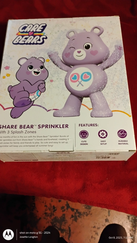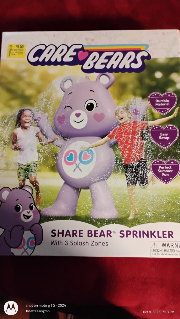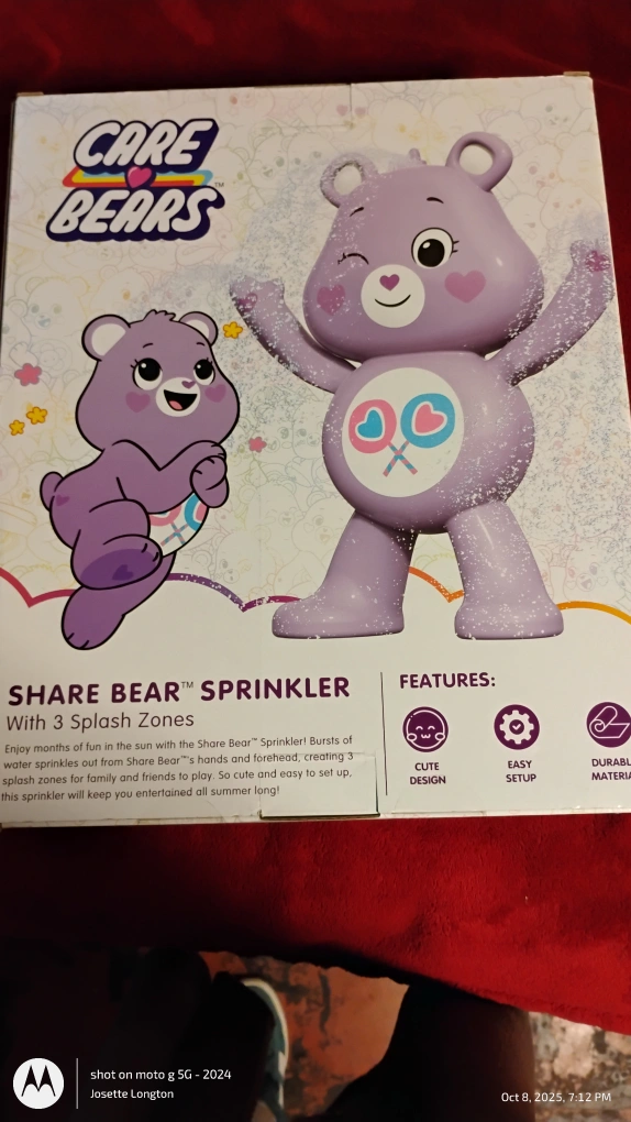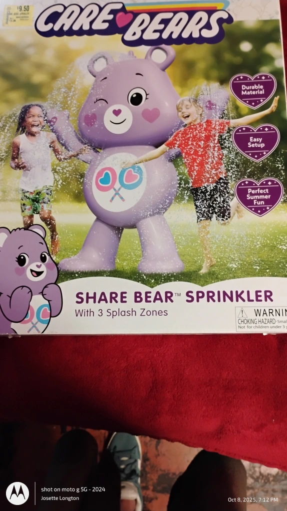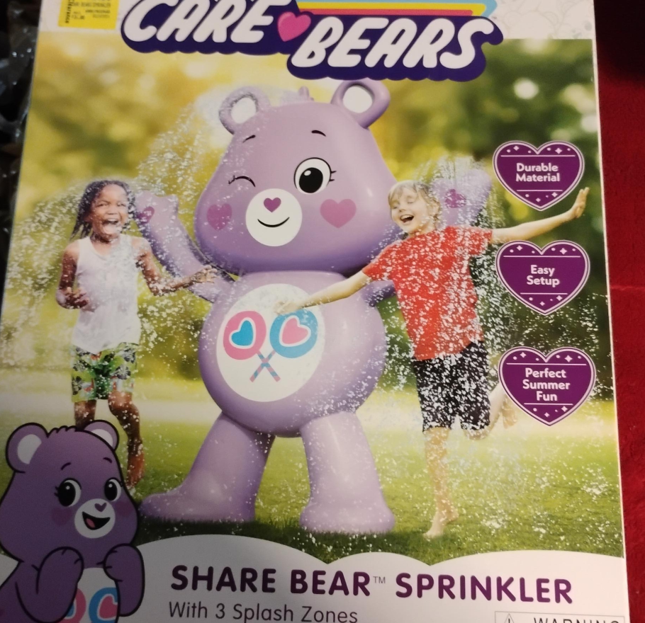 Selling a brand new Care Bears Share Bear Sprinkler! It's still in its original box and ready to bring some summer fun with its 3 splash zones. Features include cute design, easy setup, and durable material, ensuring hours of entertainment for family and friends