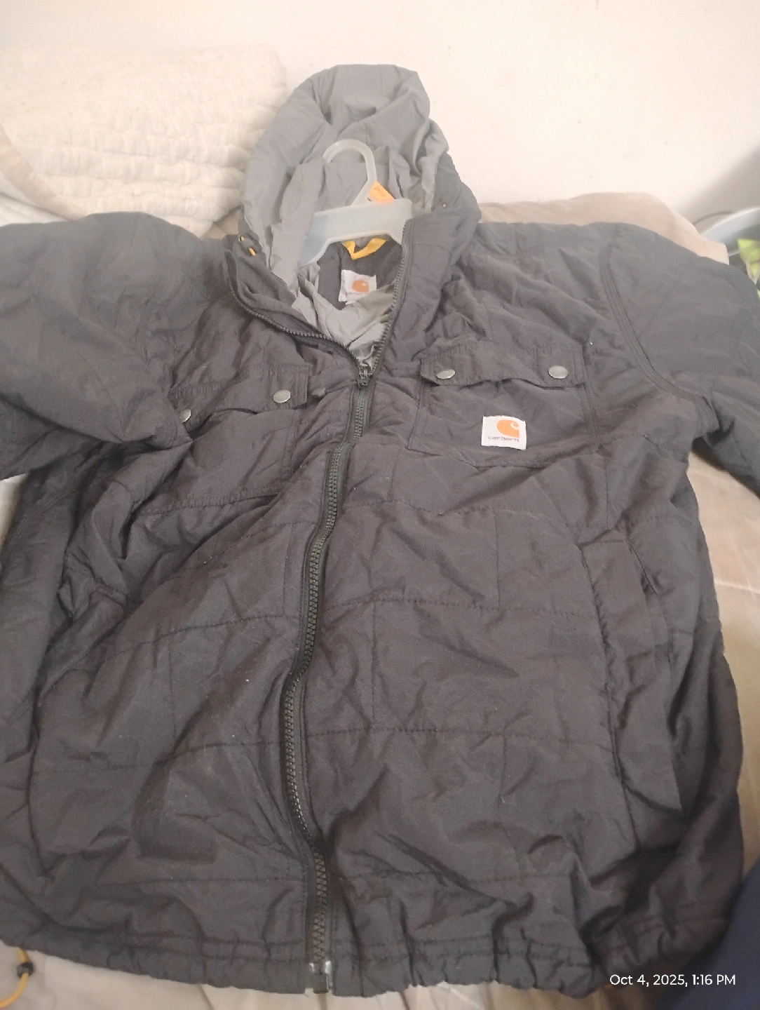 Selling a black Carhartt jacket. It's in great condition and ready for a new owner! It's a stylish and durable jacket perfect for everyday wear