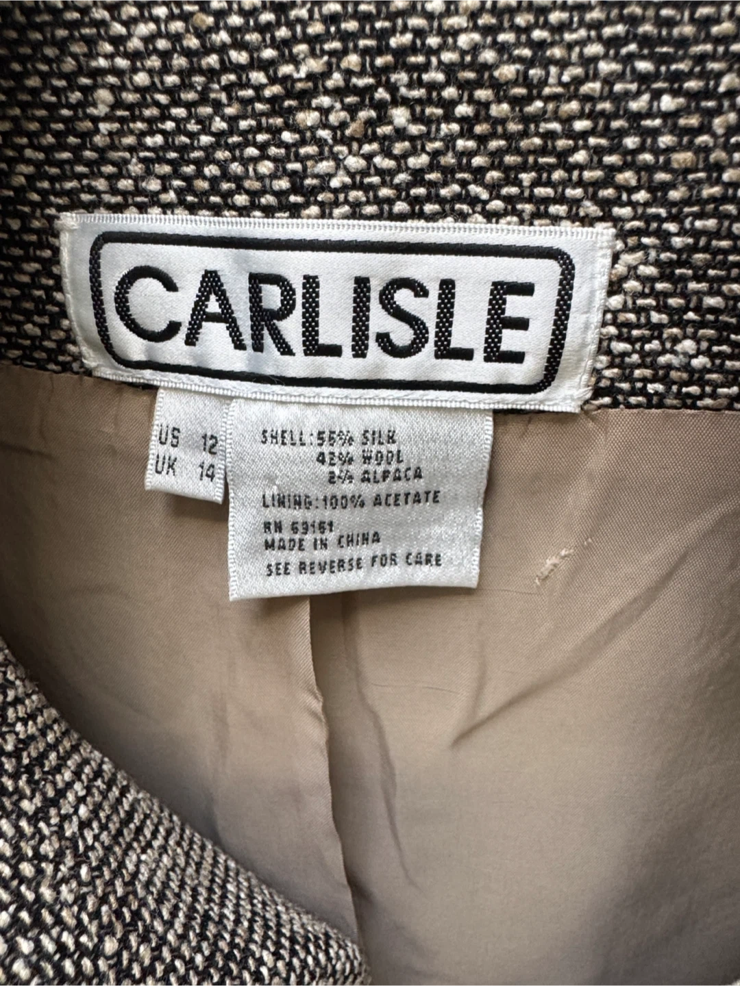 Selling a Carlisle women's blazer in size 12! The shell is made of 56% silk, 42% wool, and 2% alpaca. The lining is 100% acetate. It's a stylish and comfortable piece perfect for any occasion