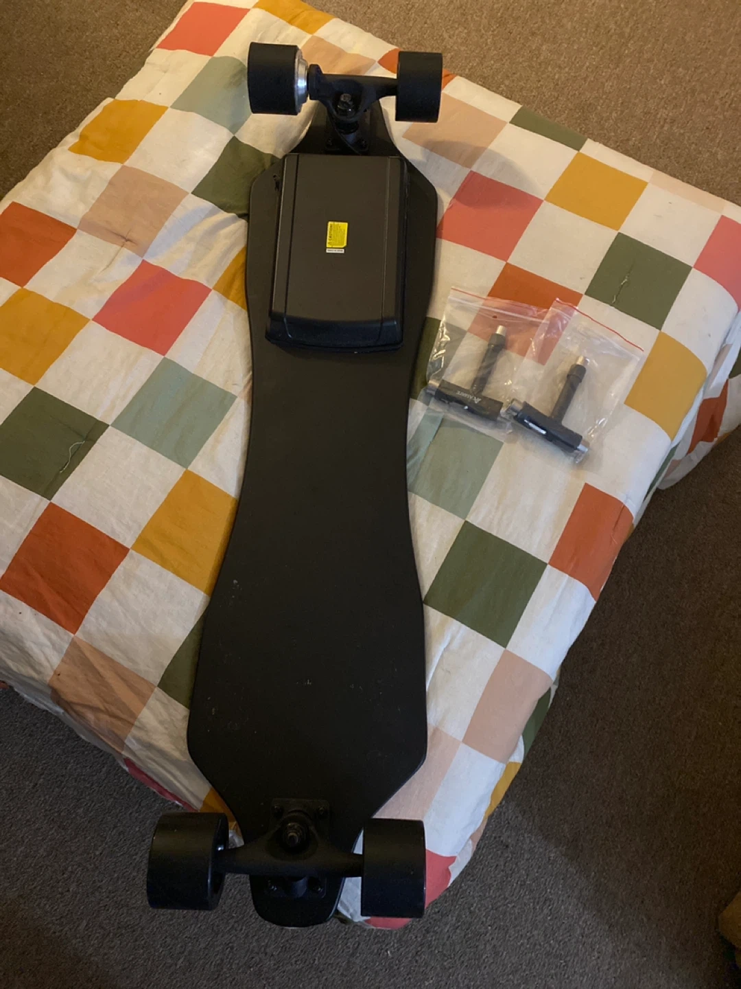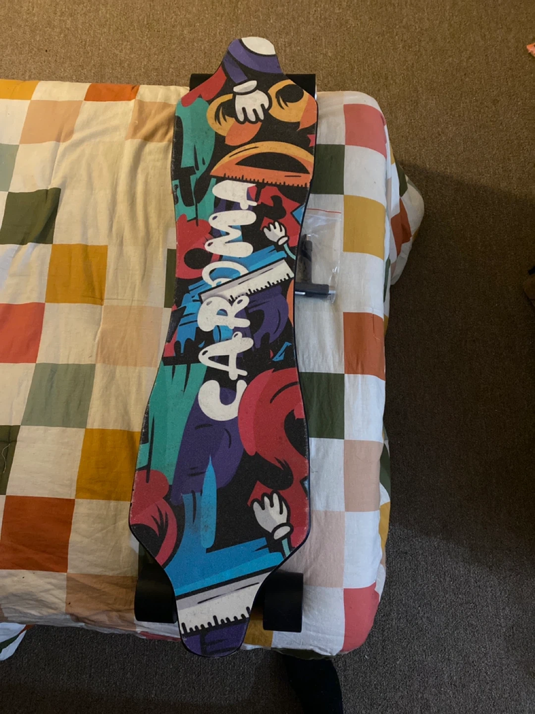 60Selling a Caroma electric skateboard. It's in good condition. Just the battery isn’t working, was short circuited. Selling for parts