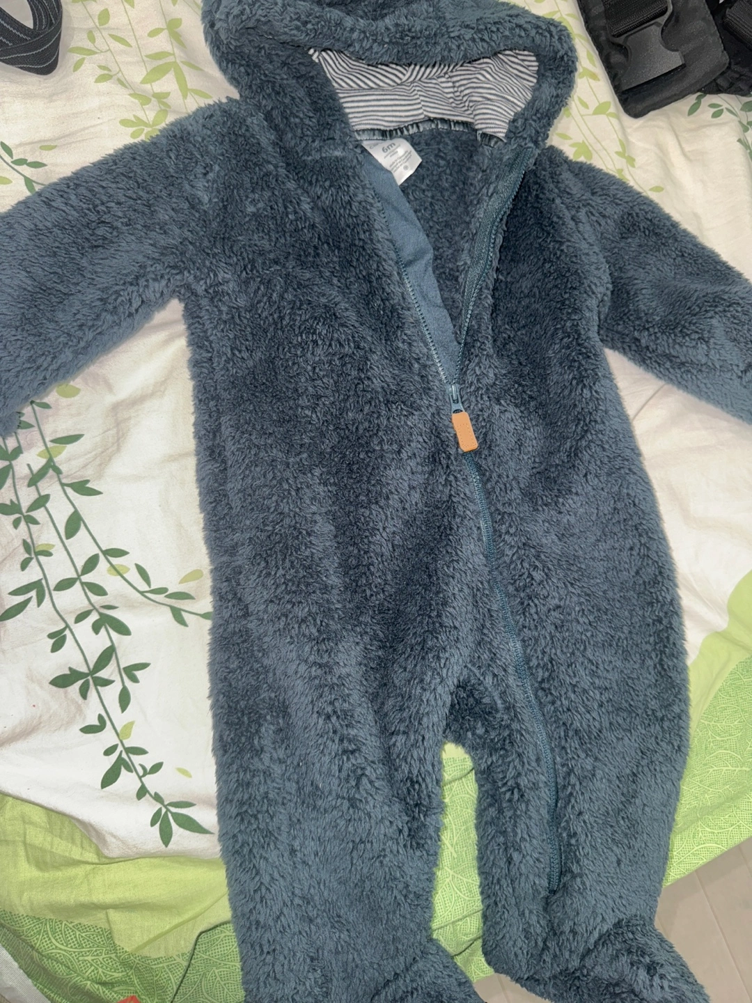 Super cozy Carter's onesie in size 6M! It's a soft, plush material in a lovely blue color. Perfect for keeping your little one warm and snuggly
