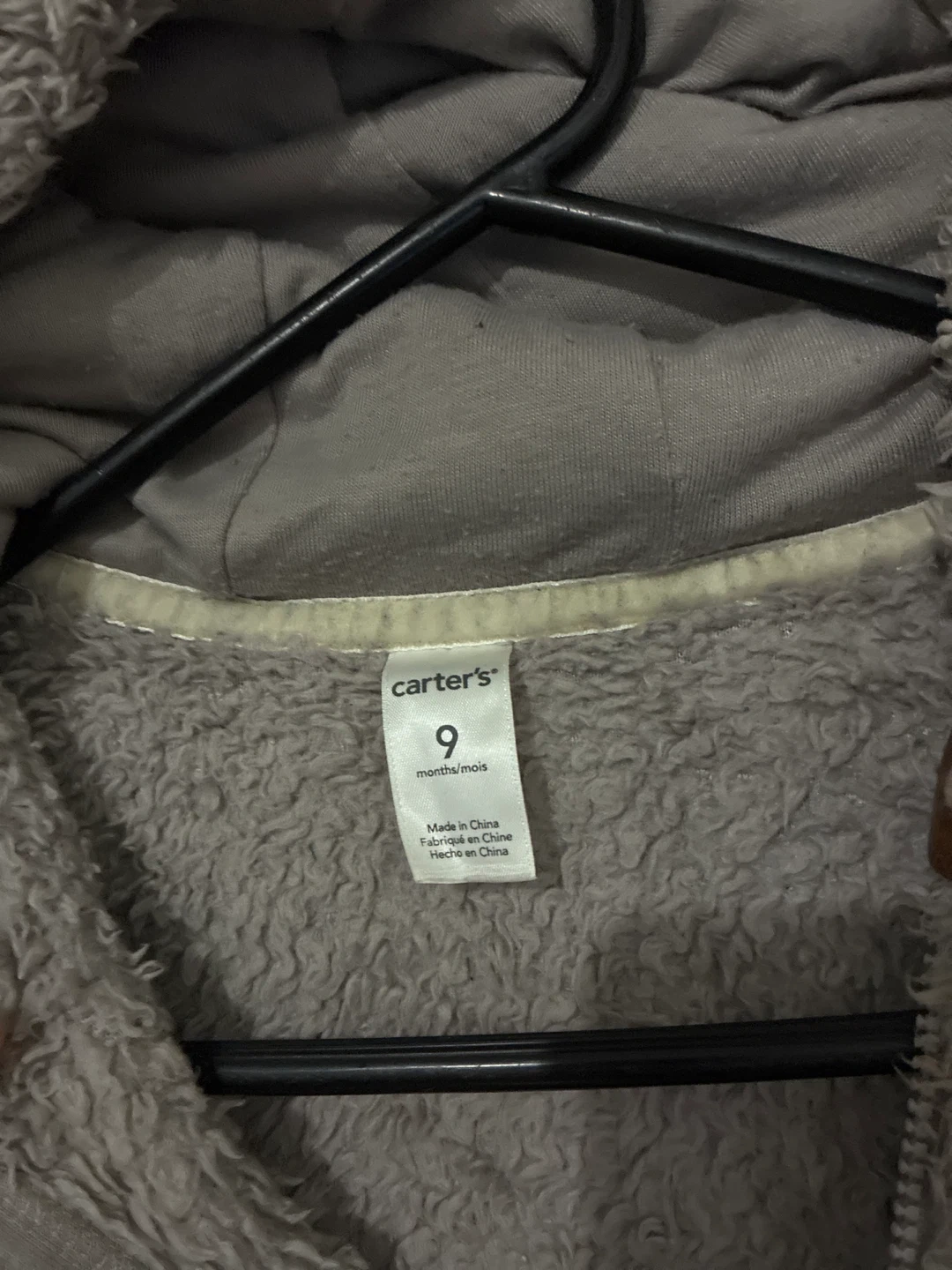 70Here's a cozy Carter's fleece onesie for your little one! It's in great condition and perfect for keeping them warm. The size is 9 months