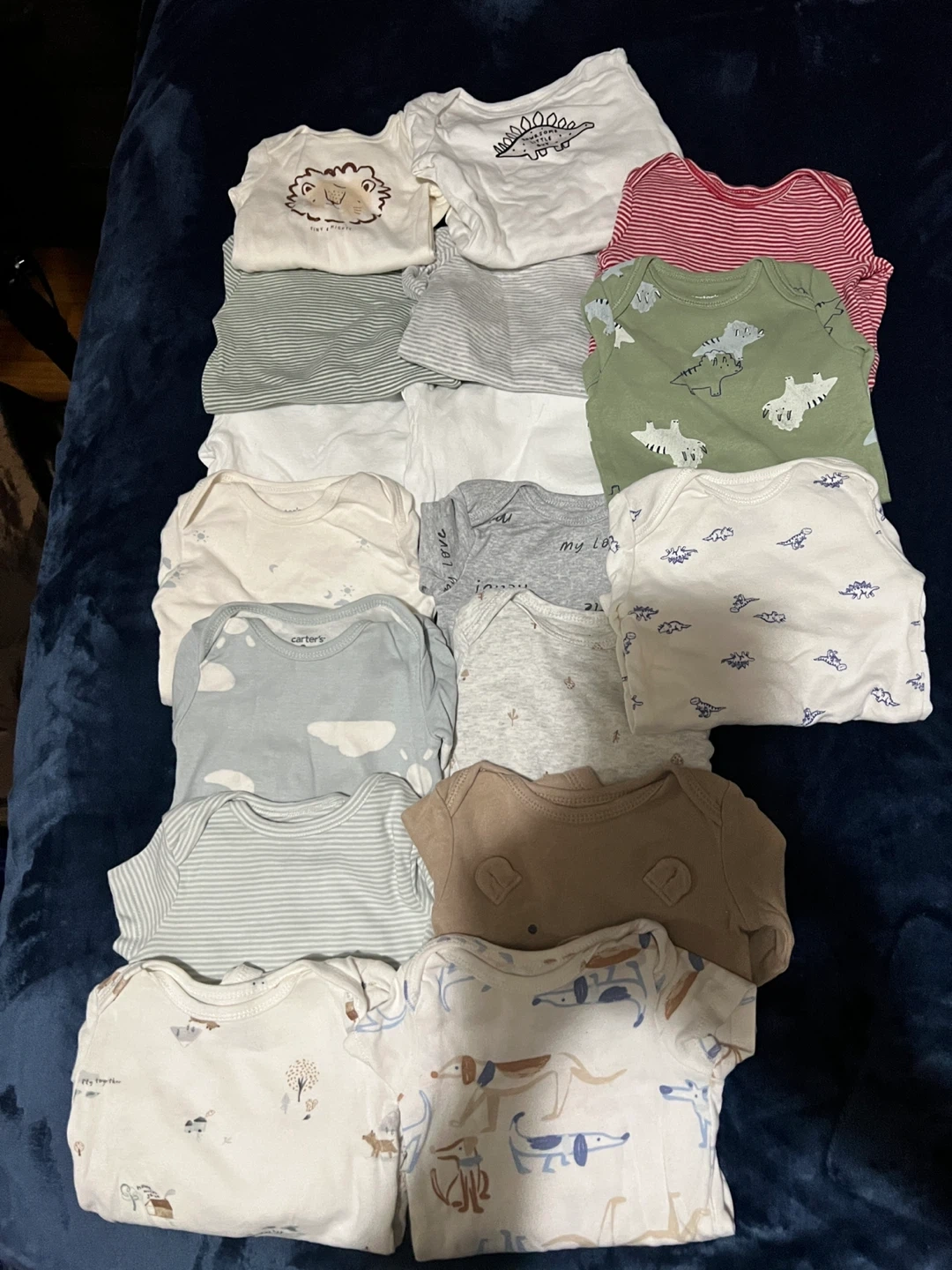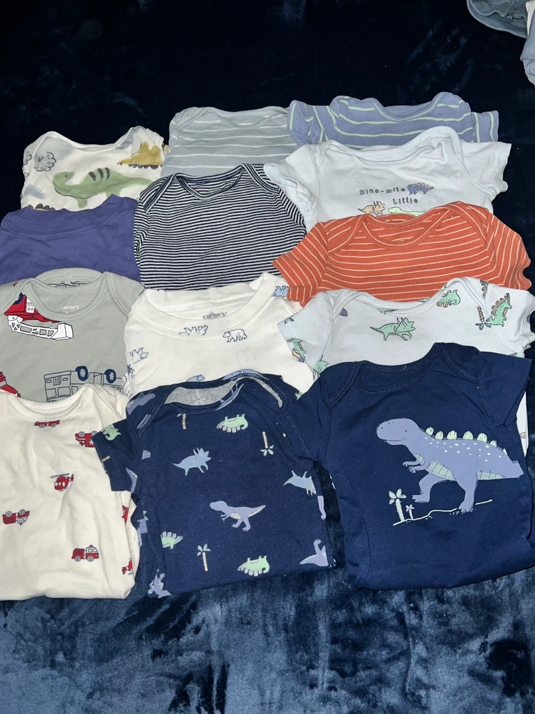 Selling a large bundle of baby clothes from Carter's, size 0-3 months! Includes a variety of onesies, sleepers, and outfits. All in great condition and ready for a new little one
