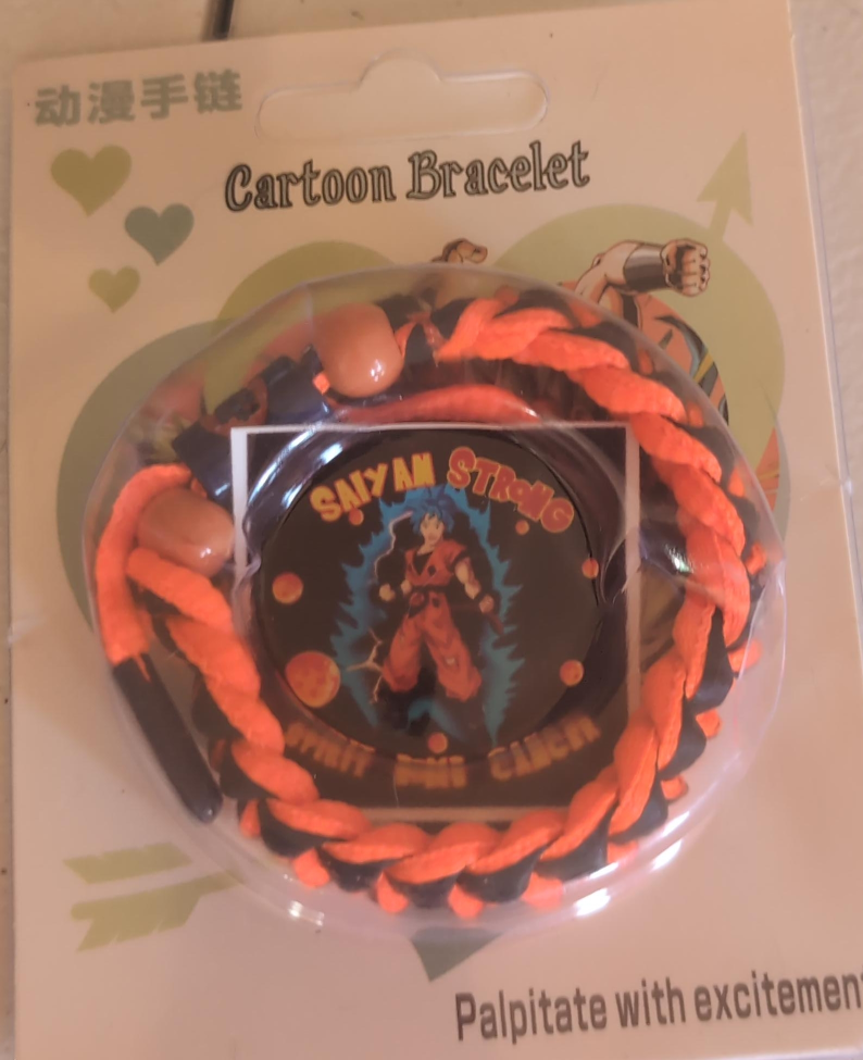This is a new cartoon bracelet featuring a Saiyan Strong design! It's still in its original packaging and ready for a new home