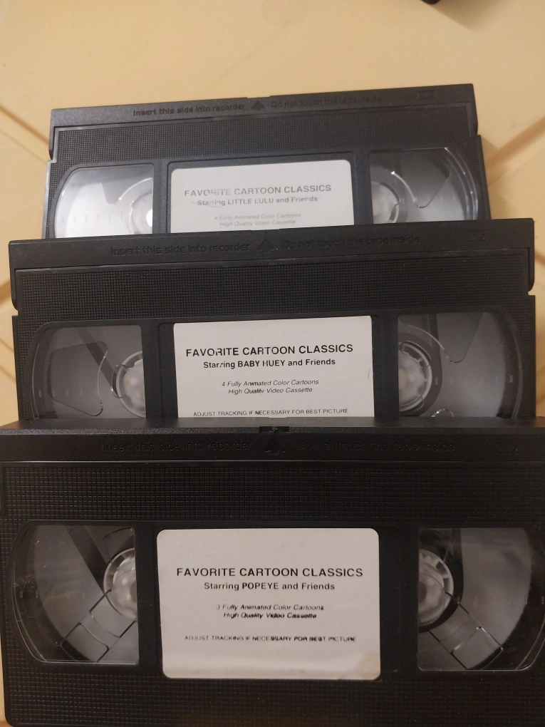 Selling a set of vintage VHS tapes featuring classic cartoon characters! The collection includes: - Baby Huey and Friends - Little Lulu and Friends - Popeye and Friends