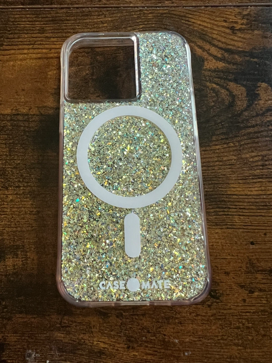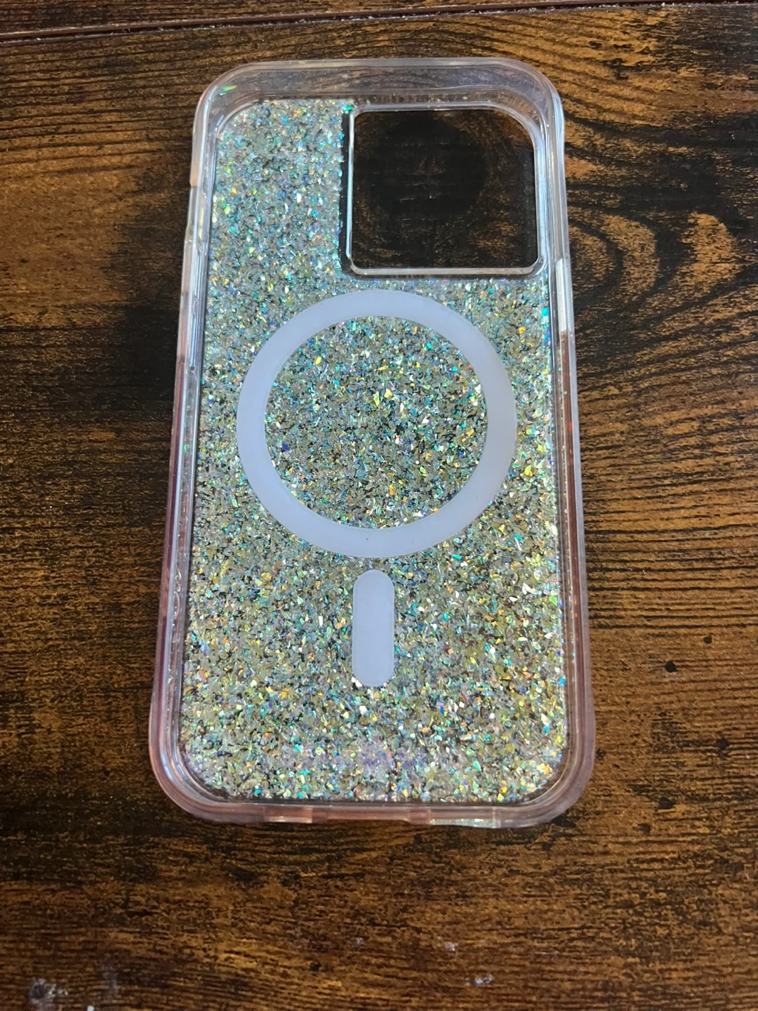 Selling a Case-Mate iPhone case. It has a glittery design and a MagSafe ring. It's in great condition and ready for a new phone! For I phone 13 pro