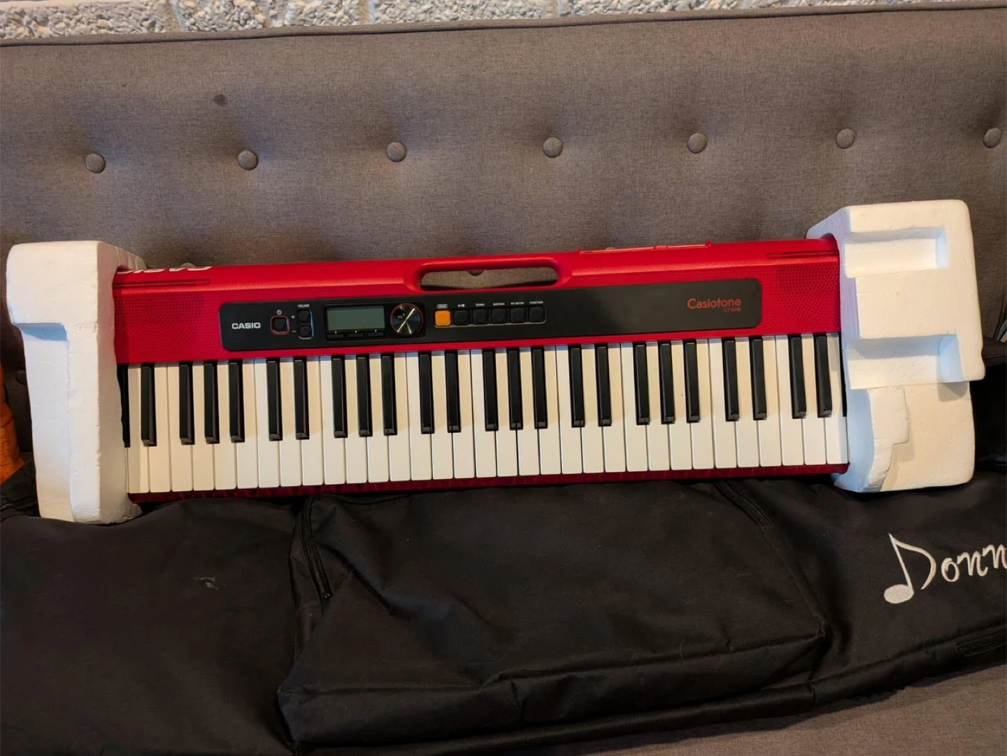 12Selling a red Casio Casiotone CT-S200 portable keyboard. It's in great condition and ready for a new home! Perfect for beginners or anyone looking for a fun, portable keyboard to play around with. Comes with the carry case, manual books all things you need used once!!!