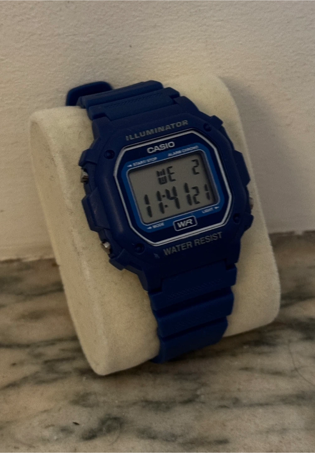 Selling a Casio Illuminator watch in blue! It features a digital display showing the time and day of the week. The watch is also water resistant. Cash Venmo Zelle local meetup ONLY