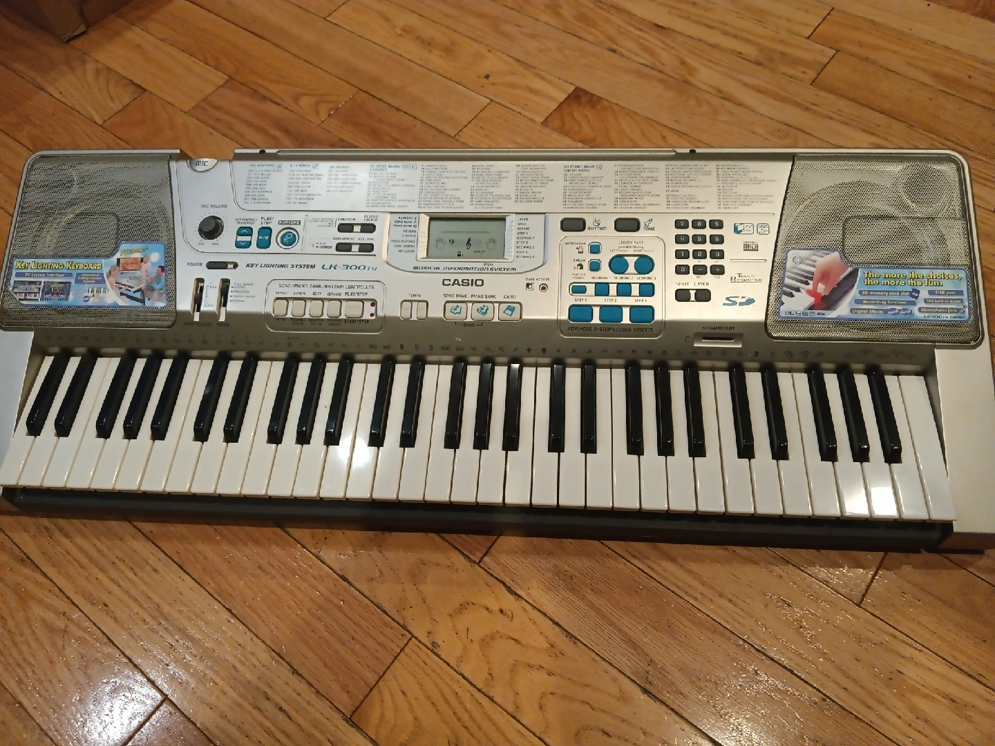76Selling a Casio LK-300TV Key Lighting Keyboard! It features a key lighting system and a song/piano bank/rhythm controller. It also has an advanced 3-step lesson system to help you learn! It works on D batteries.