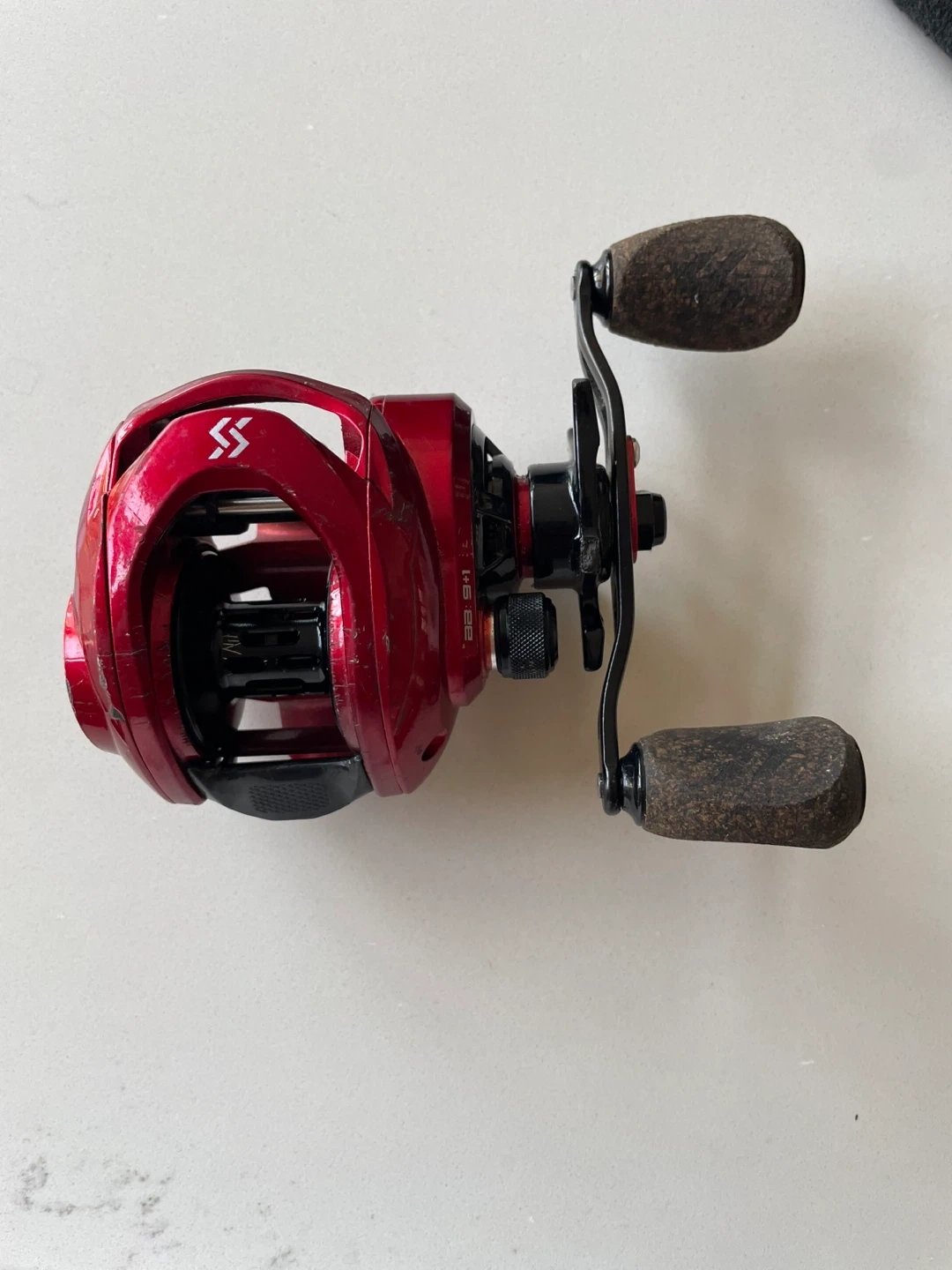 10Selling a red Sougayilang baitcasting fishing reel. It has some signs of use, as shown in the pictures, but it's still in good working condition.