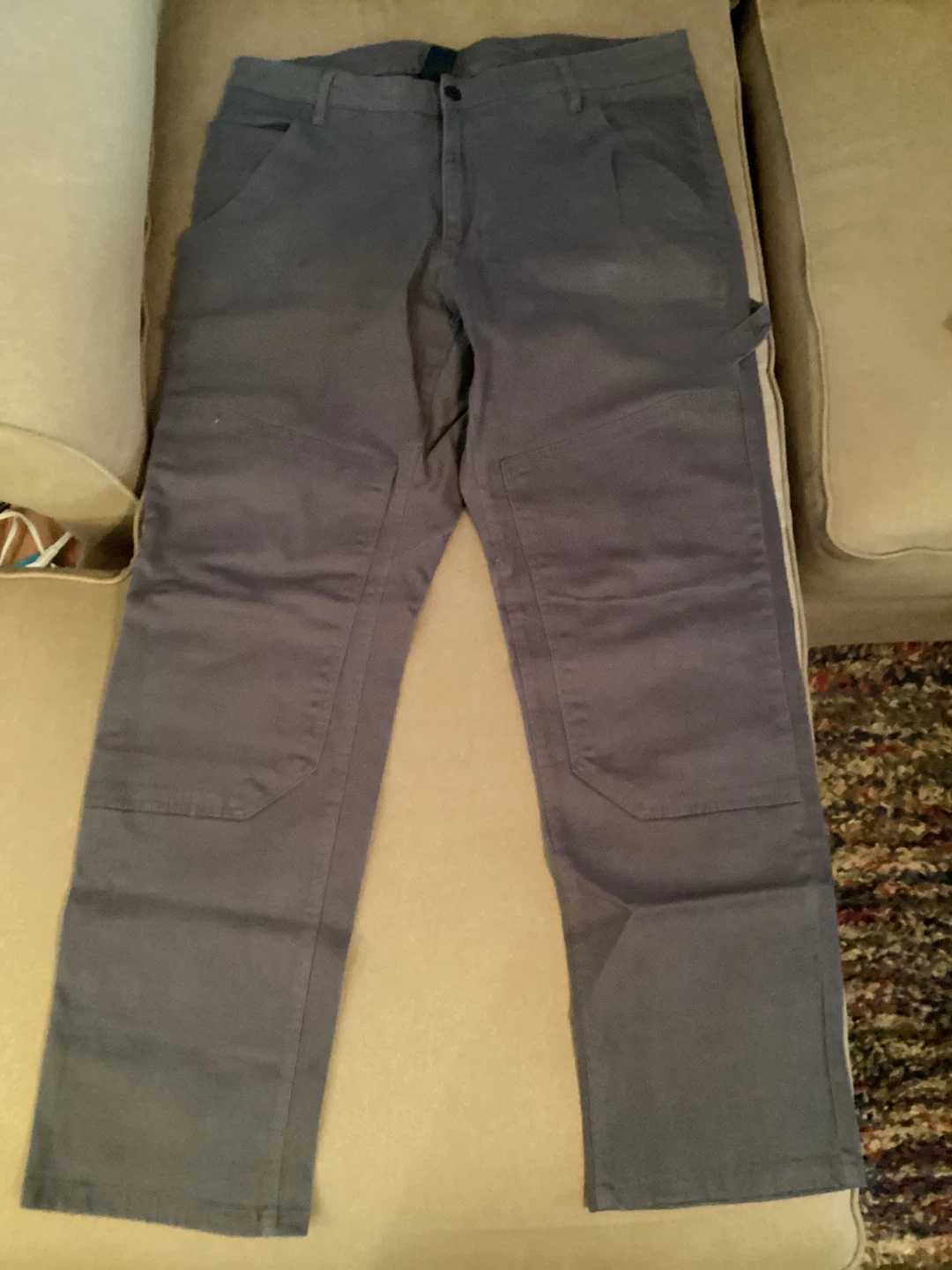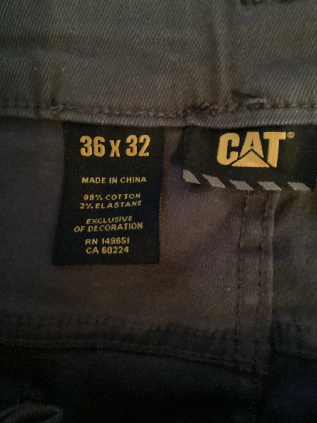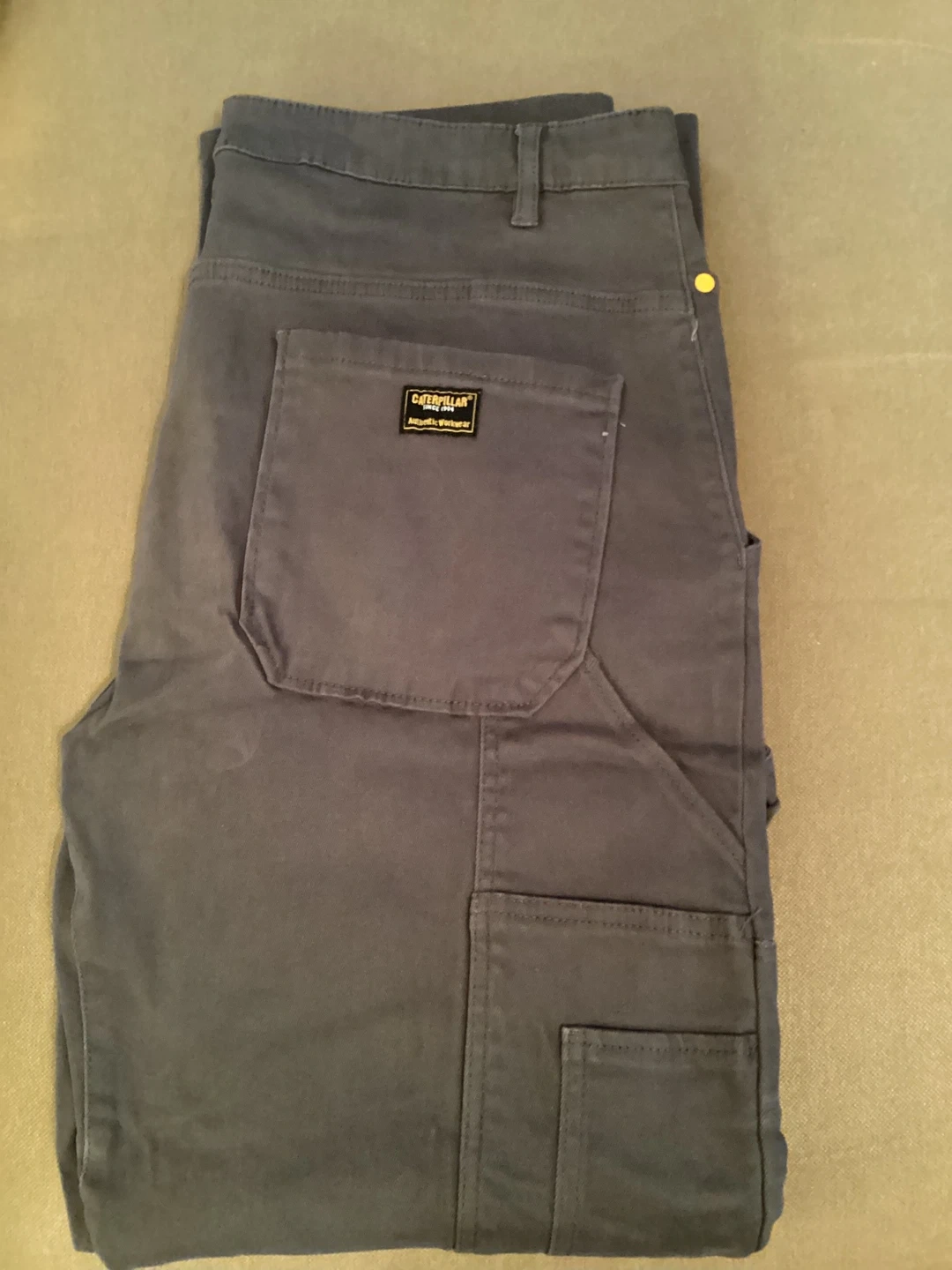 Selling a pair of CAT carpenter pants in size 36x32. They are made of 98% cotton and 2% elastane.