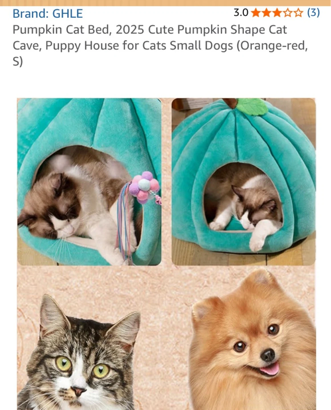 15Brand: GHLE 3.0 3.0 out of 5 stars (3) Pumpkin Cat Bed, 2025 Cute Pumpkin Shape Cat Cave, Puppy House for Cats Small Dogs (Orange-red, S)