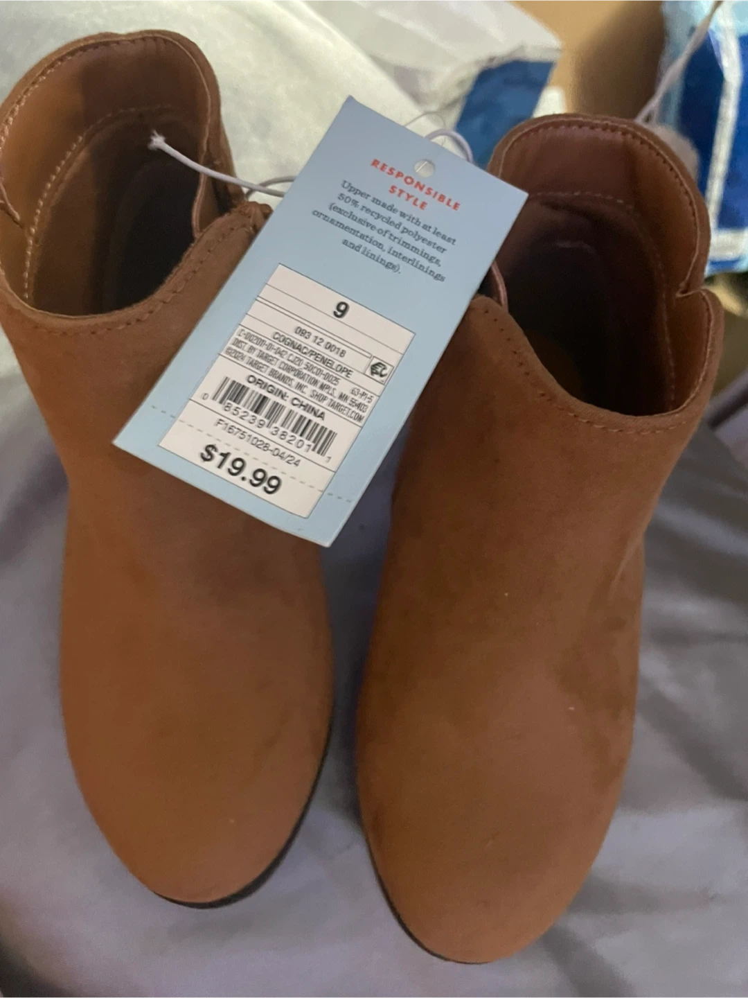 Selling a pair of new Cat & Jack Penelope ankle boots in cognac color! They are a size 9 and still have the tags attached. Originally bought for $19.99