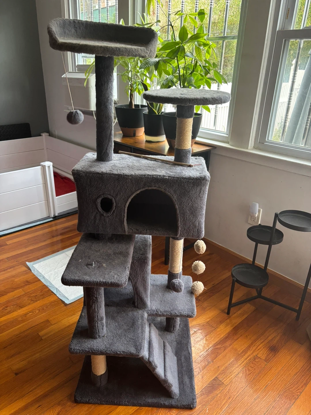 65Selling a cat tree in great condition! It's a fun place for your cat to play and relax. It features multiple levels and scratching posts for your cat's enjoyment