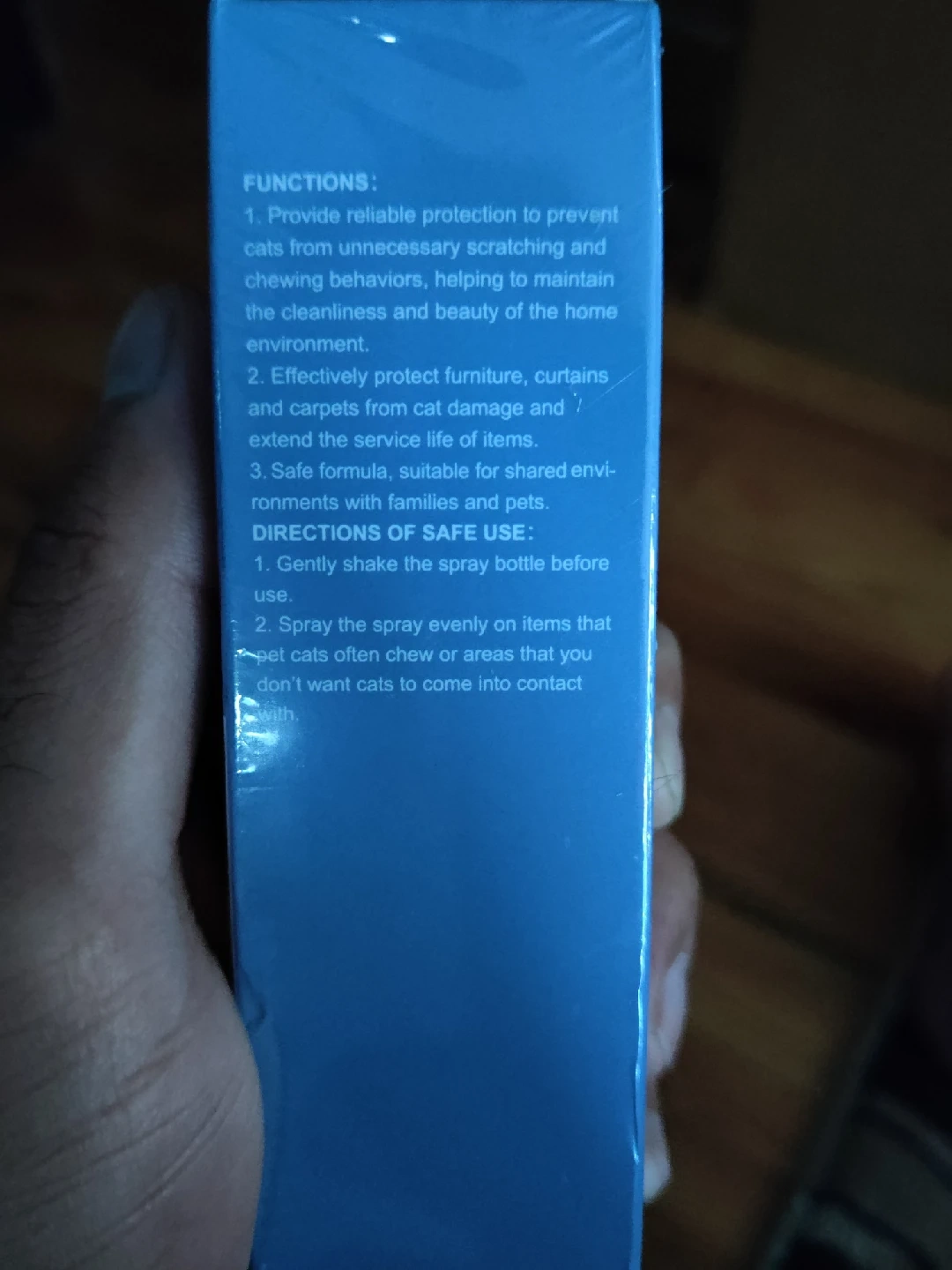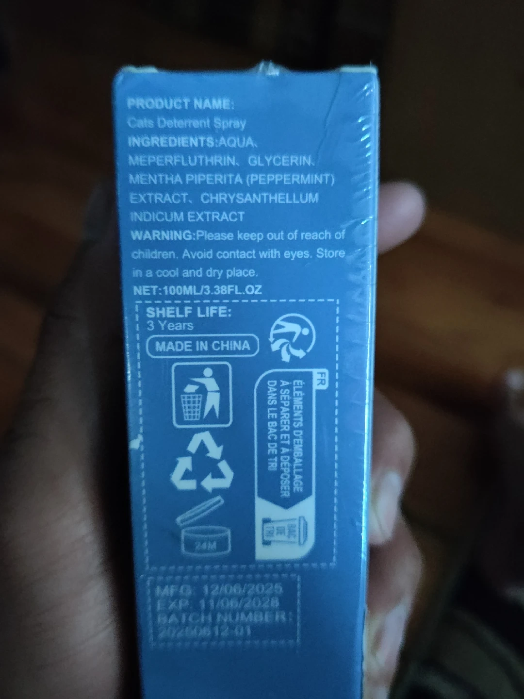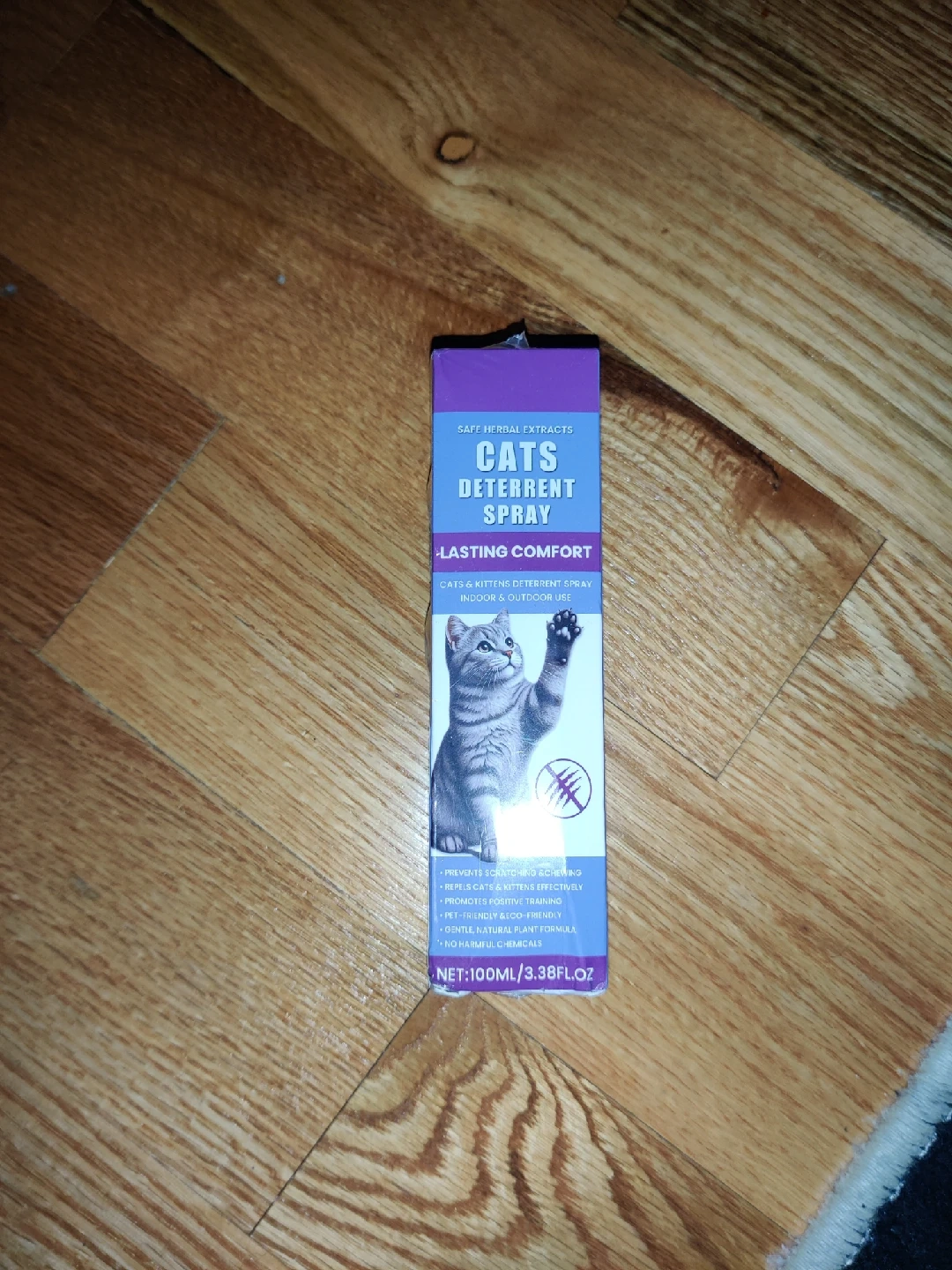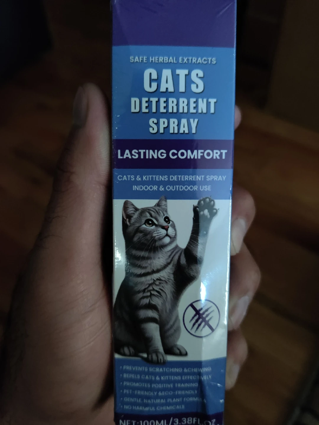 118a new Cats Deterrent Spray. It provides reliable protection to prevent cats from unnecessary scratching and chewing behaviors, helping to maintain the cleanliness and beauty of the home environment. It effectively protects furniture, curtains, and carpets from cat damage and extends the service life of items. The expiration date is 2026 June 06.