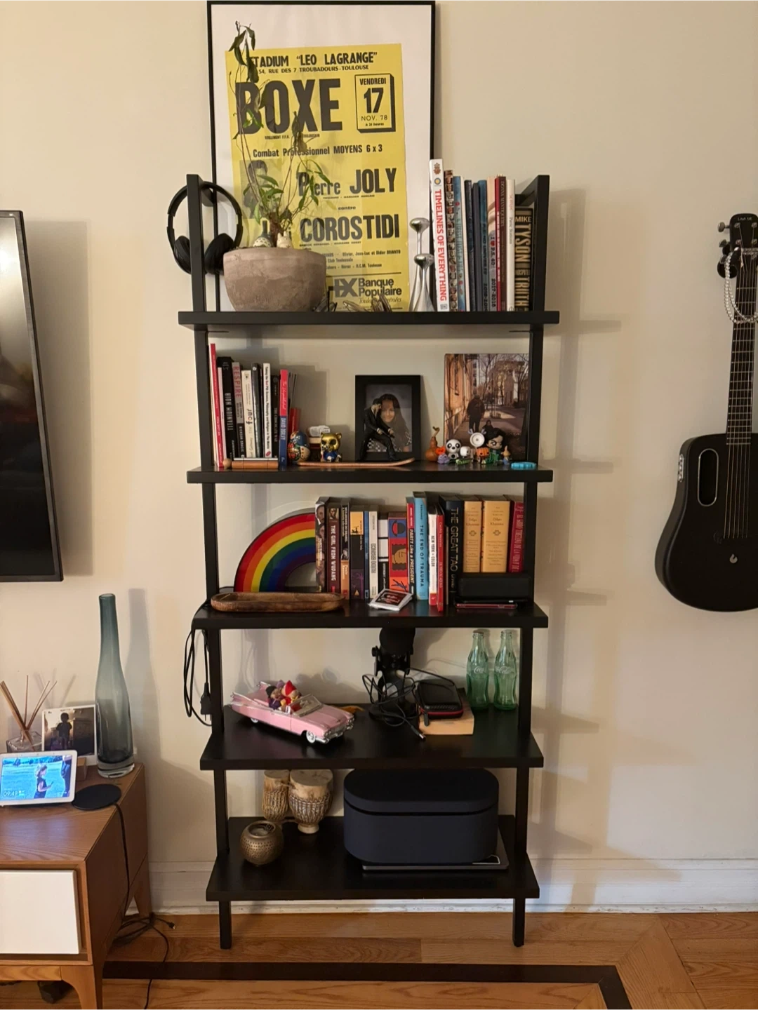 Selling a black ladder shelf! It's in great condition and perfect for displaying books, plants, or other decorative items. It's a stylish and functional piece that would look great in any room https://www.cb2.com/stairway-72.5-black-metal-wall-mount-bookcase/s381220