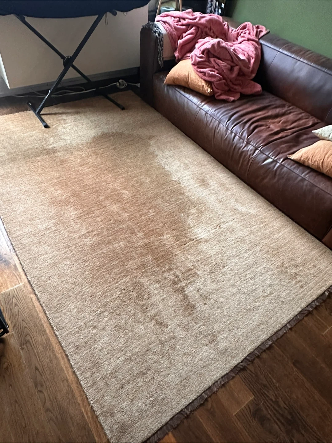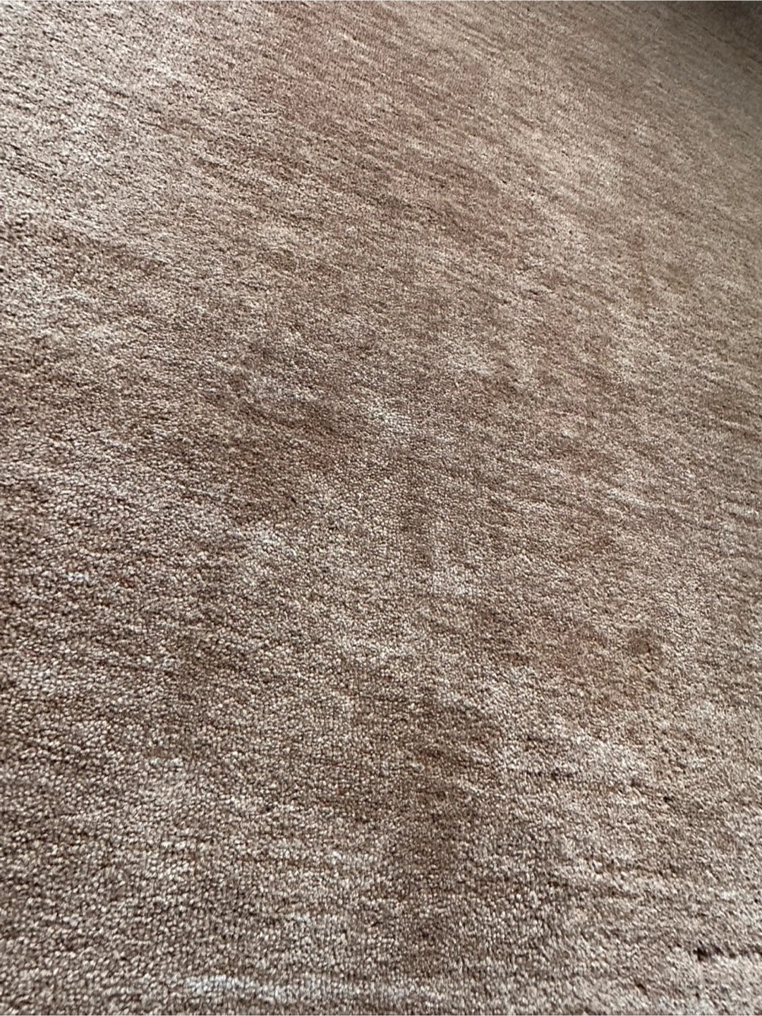 60CB2 Handloomed Wool Area Rug color of wool changes slightly with the direction of the grain which is why it looks like 2 different colors. Very great minimalist rug. 5’x8’ with fringe on the ends. Bought for $450
