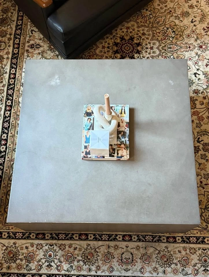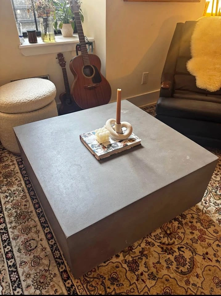 83Ultra-solid concrete coffee table from CB2 with a sleek, industrial feel. This piece weighs approx. 300 lbs and was originally $599. It’s bold, modern, and brings serious presence to any space. Size: ~31.5” x 31.5” x 15” Condition: Fair – has surface imperfections, scratches, and one visible chip (all shown in photos), but it’s structurally sound VERY heavy — you’ll need 2 strong people and a vehicle to transport it Pickup from a 2nd-floor walk-up in Bed-Stuy, Brooklyn Perfect for someone who loves modern design and doesn’t mind a bit of patina.