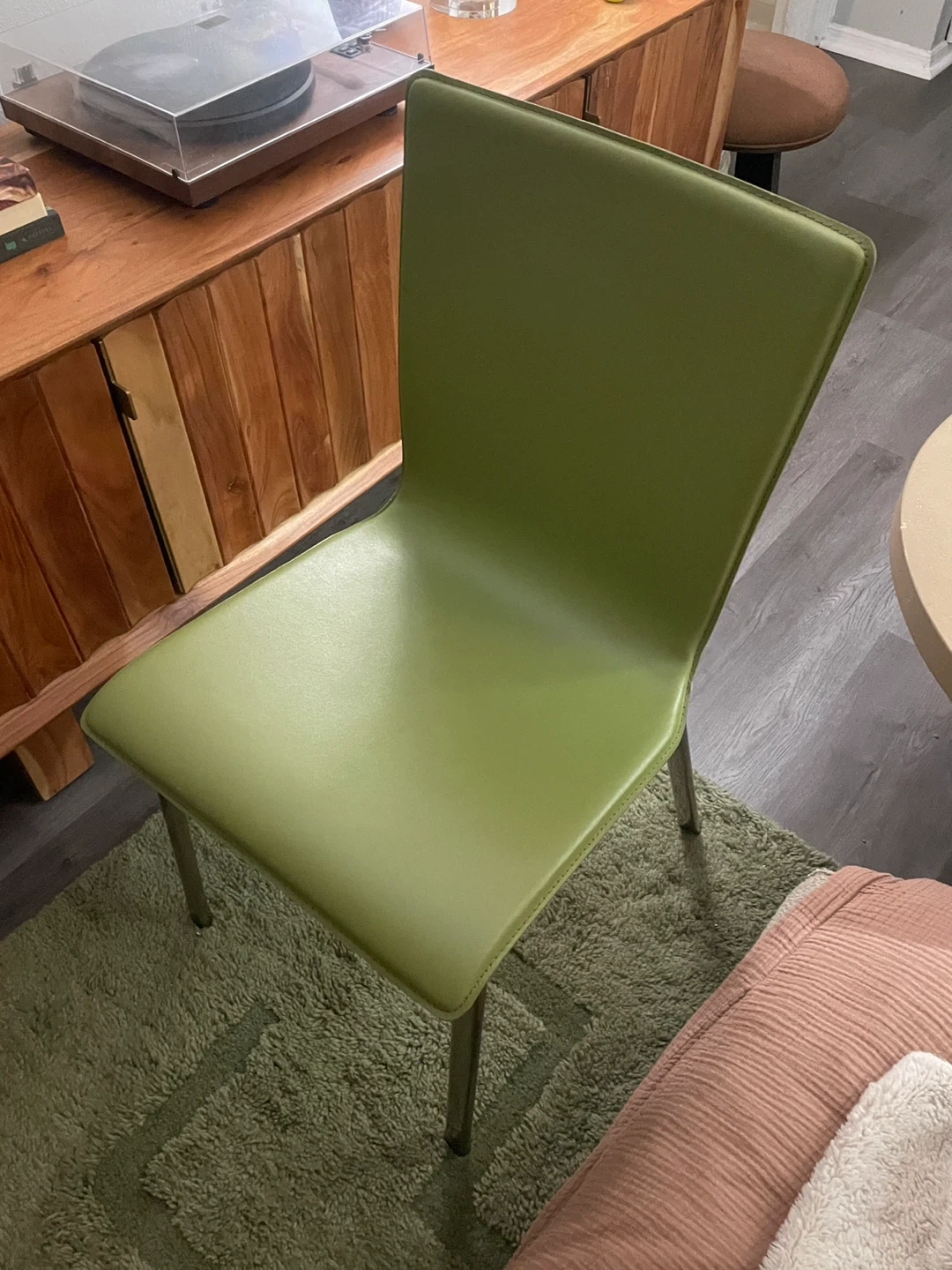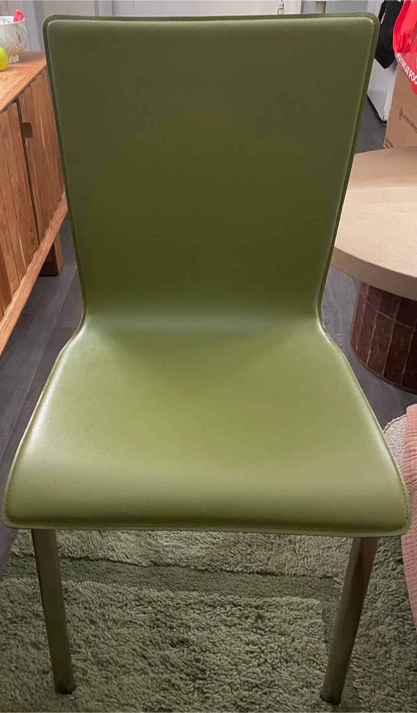 87Selling two green mid century modern CB2 chairs. It's made with polyurethane foam. There are some signs of wear on the back of one of the chairs but otherwise great condition. Looking for their new home! Great as dining or office chairs. Selling set for $100 or $50 per chair. Estimated retail for $200.