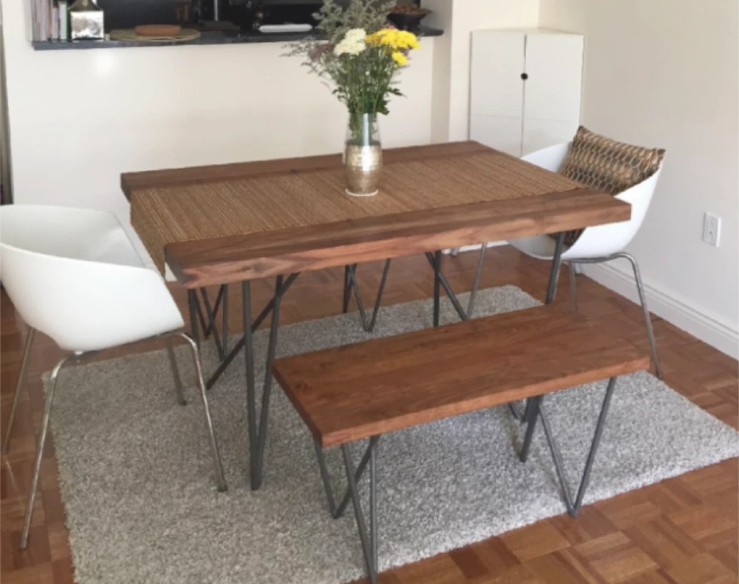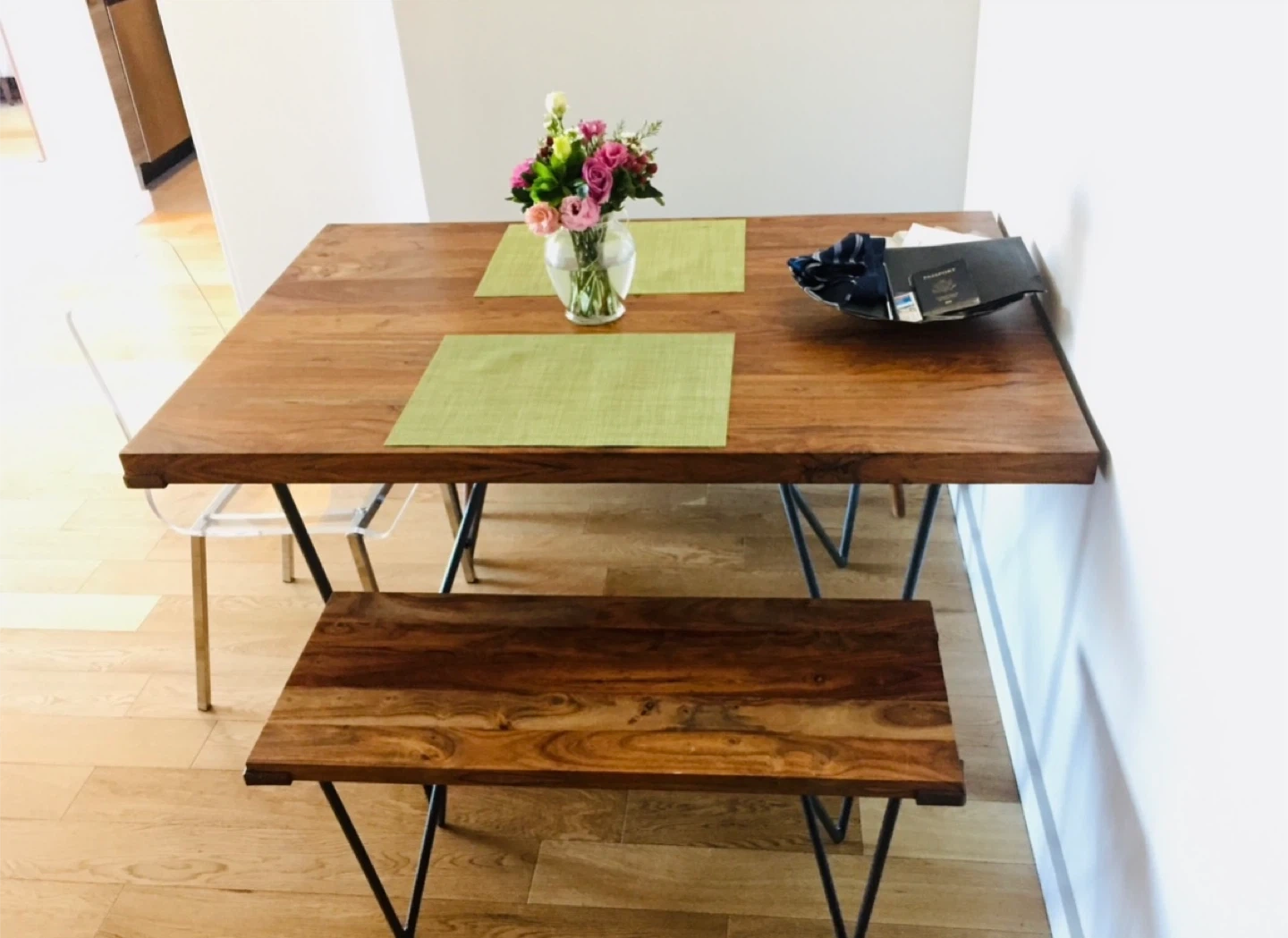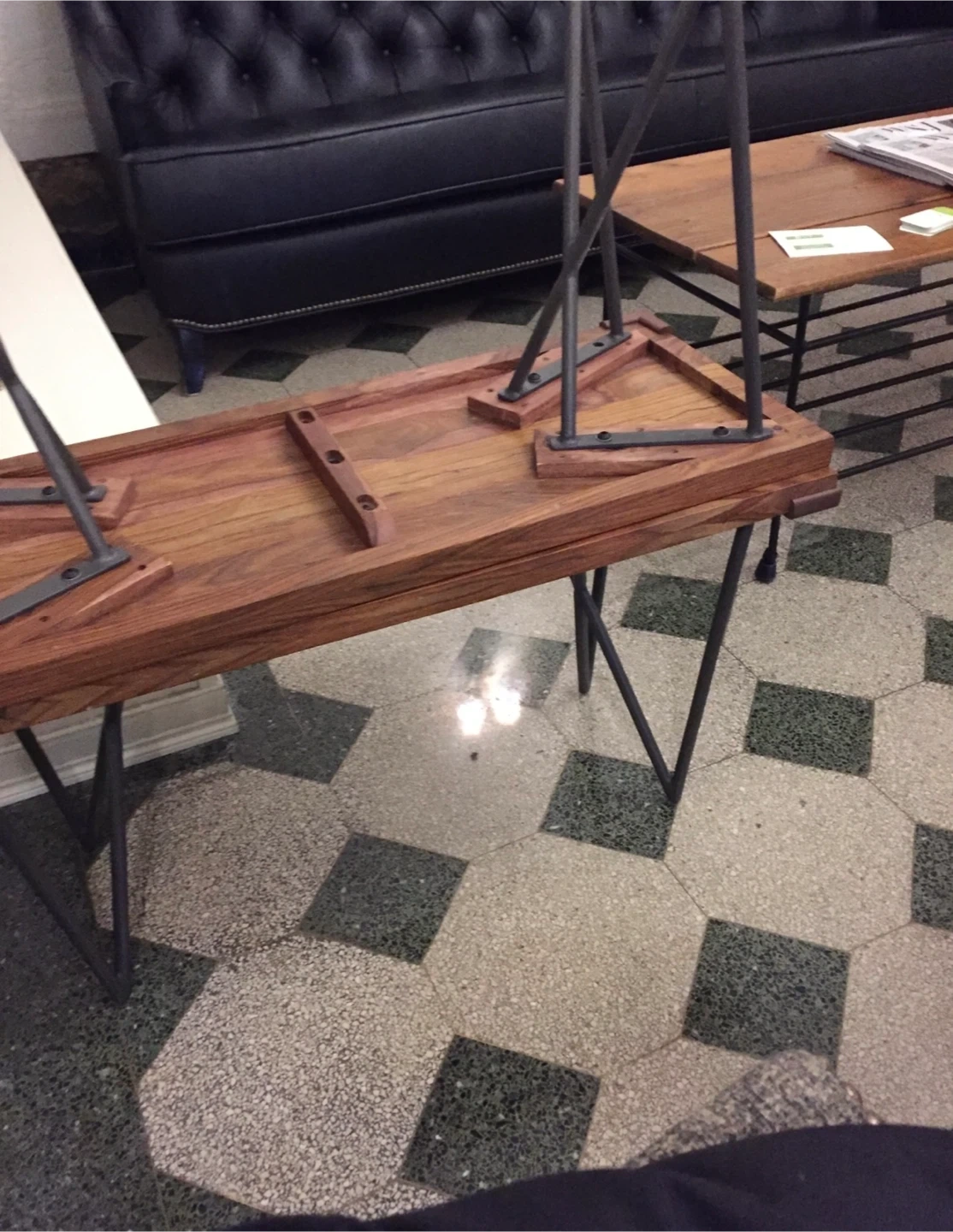 144A beautiful wood table by CB2, with unique metal legs. It would be a great addition to any home or office! Comes with 2 benches. $450 This table is out of stock everywhere. It’s amazing. Only selling because I am moving and this is in storage.