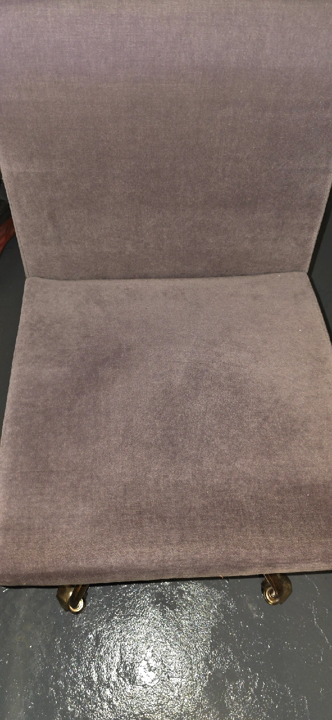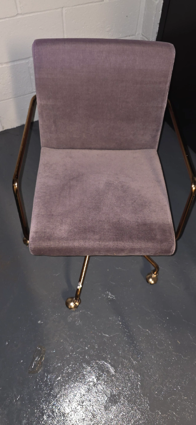 Selling a stylish gray velvet chair featuring a unique gold metal frame. This chair would be a chic addition to any room. It's in great condition and ready for a new home