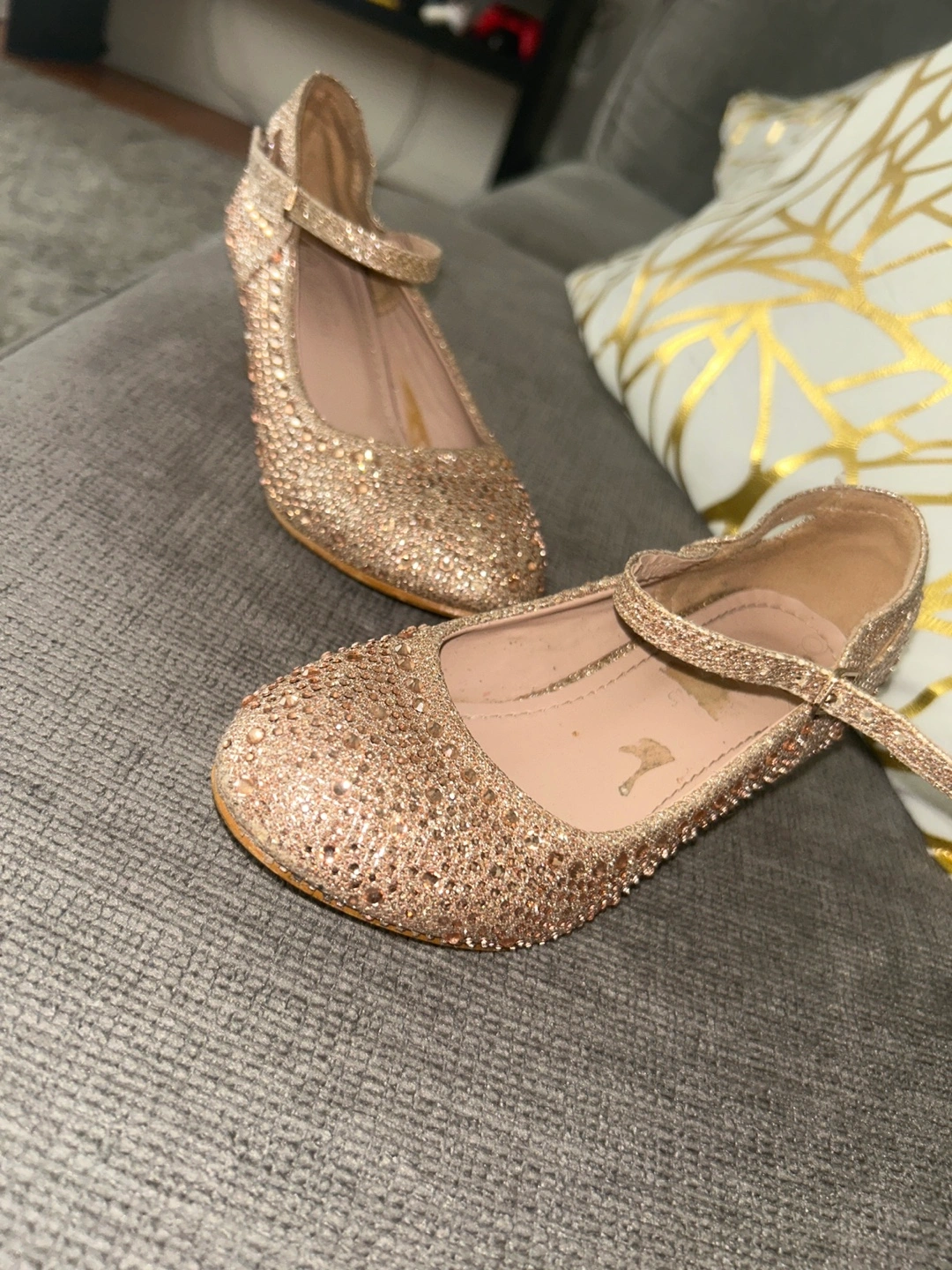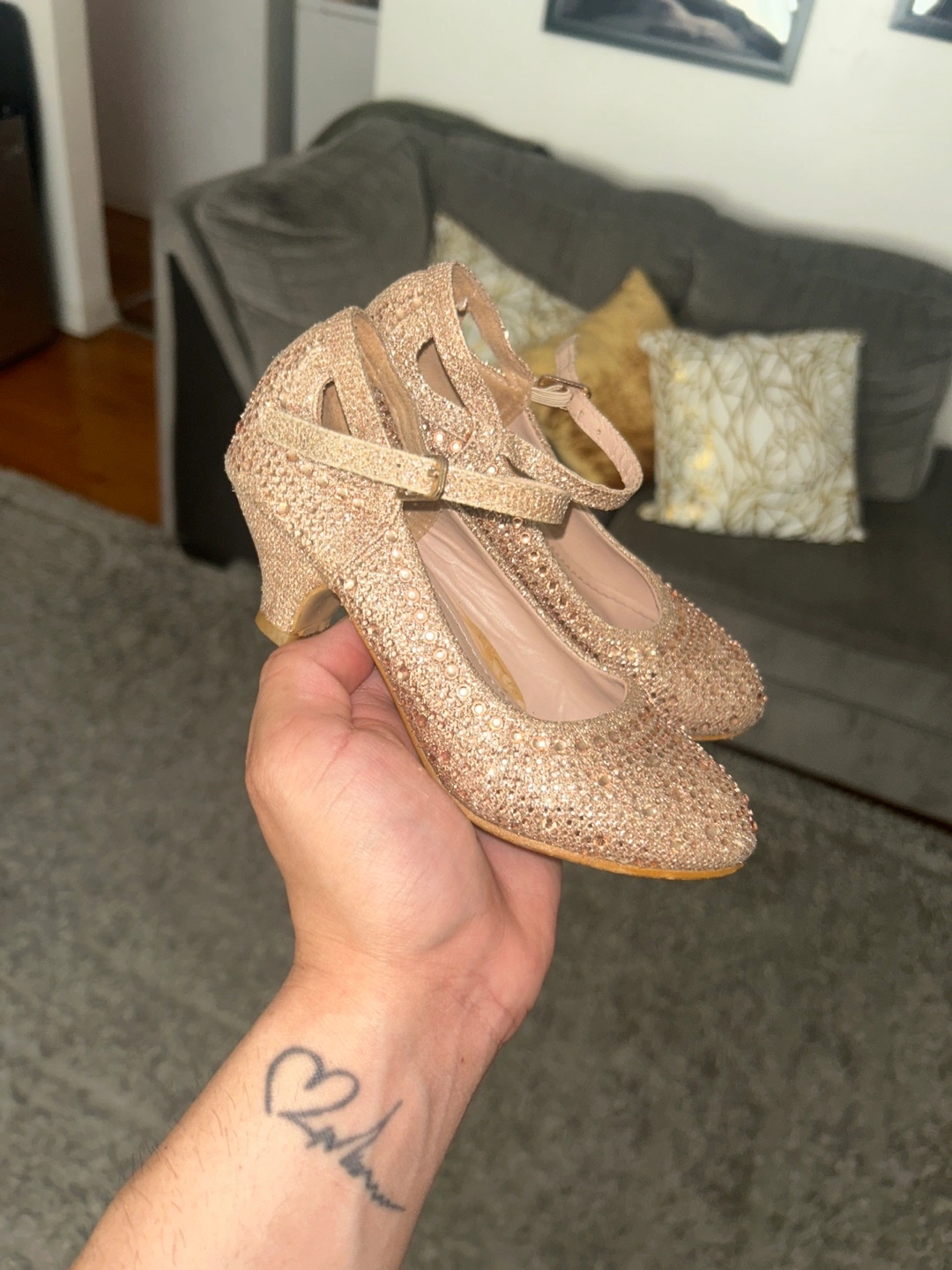1 / 41 / 4Buy & SellGirls' Rose Gold Glitter Low Heels,Girls' Rose Gold Glitter Low Heels,$7Adorable rose gold glitter low heels. Perfect for parties or special occasions. Features a cute ankle strap. Slight wear visible.ConditionGoodSize12WHERE TO MEETCheck LocationView MapSELLERverifiedElenaWest Lawn1317 reviews0 chats·0 favorites·16 viewsSEND CHAT TO SELLERHi Elena! I’m interested in your listing.Hi Elena! I’m interested in your listing.Get the Karrot app to chatSign In to chat