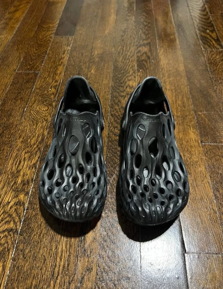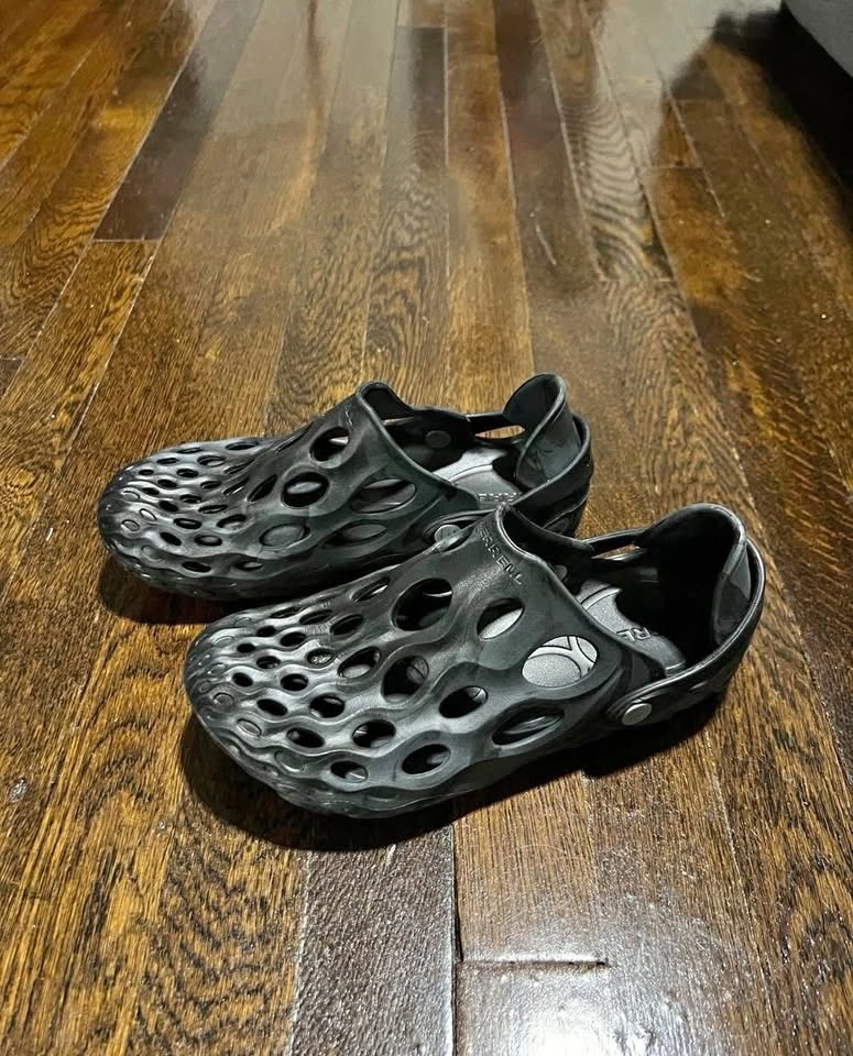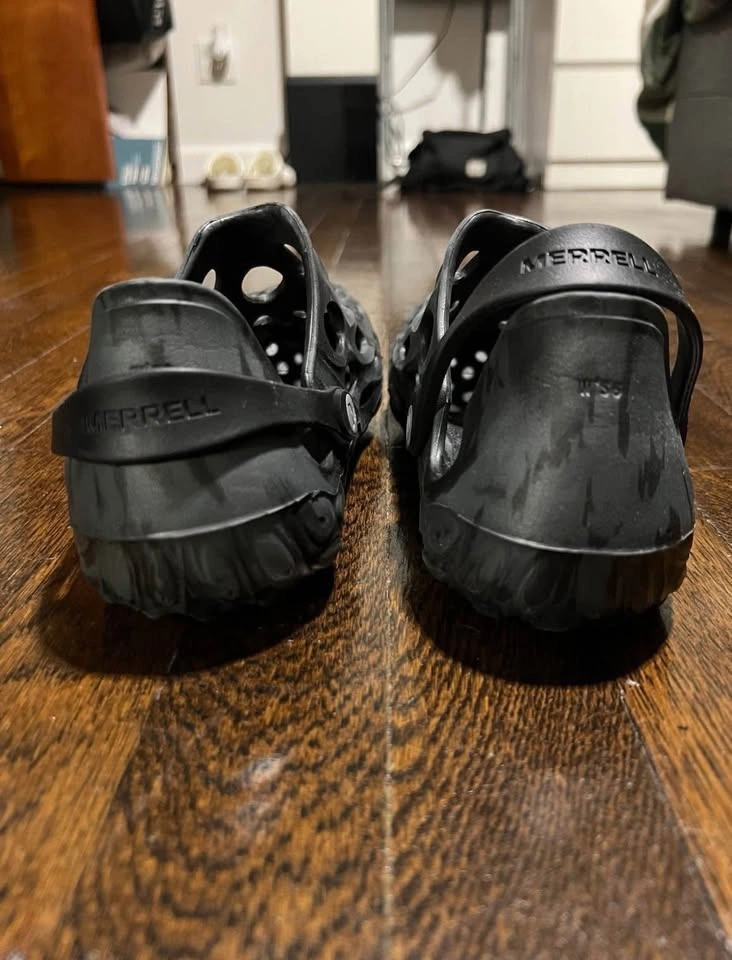 Merrell Women's Hydro Moc Clog. Color Black and Grey MX, Size 6 Womens. Worn Once, Like new condition. EVA foam for a more water-friendly durability. Slip-on entry with heel strap for a snug fit and street-ready style. BLOOM® performance foam for our cushiest, greenest Hydro Moc yet. FloatEco Foam™ for lightweight comfort after any adventure. Bold color choices. Vegan-Friendly.