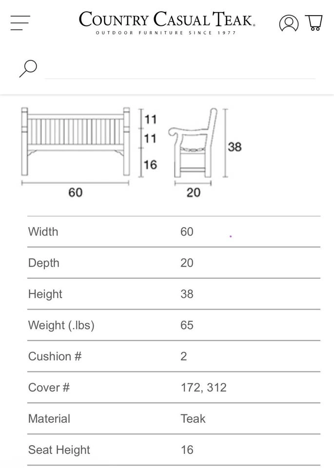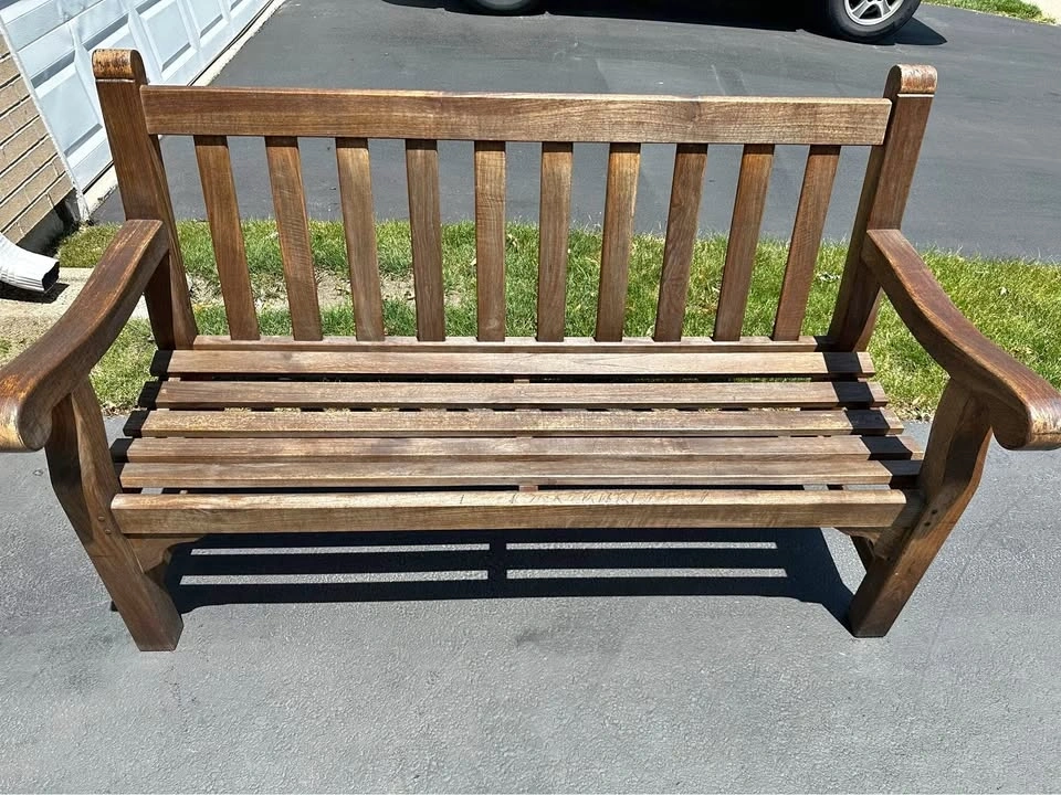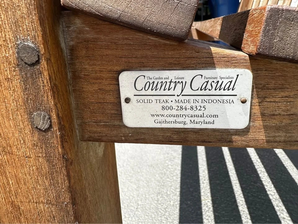 Country Casual Teak Monarch 5ft Bench. Original Price: $1,892. Gently used – solid, sturdy, and naturally weathered teak (can be restored to golden tone with teak cleaner/oil if desired). Grade-A solid teak wood (naturally resistant to rot and insects). Comfortably seats 2–3 adults. To maintain the look, it is suggested to cover in the winter months and oil 1-2 times a year. FRESHLY OILED! $700 OBO. No low ball offers. This bench is perfect for patios, gardens, porches, or entryways. Local pickup only. Located in Lake Villa.