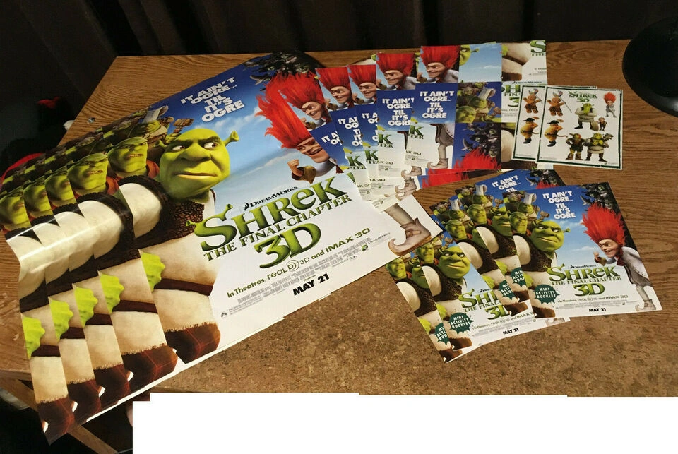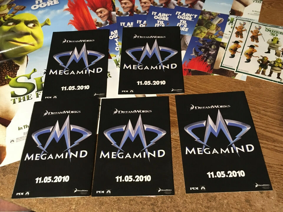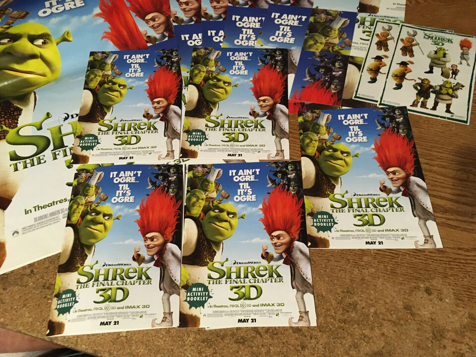 Large lot of Shrek Forever After promotional materials. Includes posters and mini-booklets. Some Megamind promotional items included. one sticker got stuck to the back of a poster otherwise all in good condition posters are folded cash only pick up at house