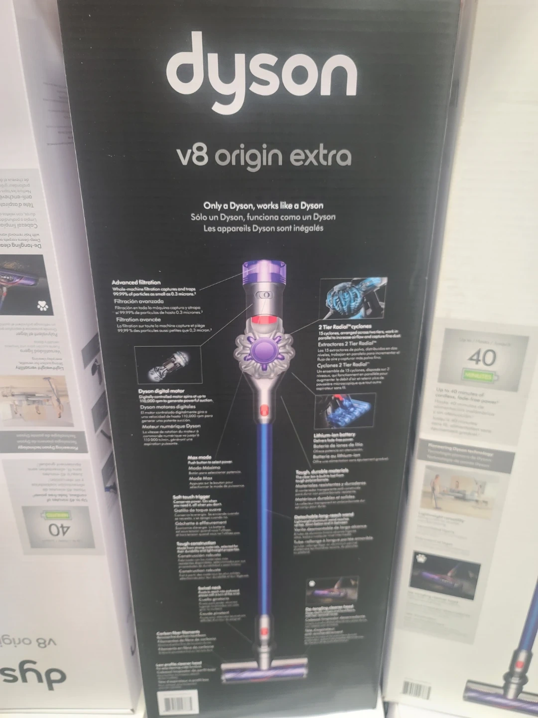 Dyson V8 Origin Extra cordless vacuum cleaner. It's powered by the Dyson digital motor V8. It offers up to 40 minutes of fade-free suction.