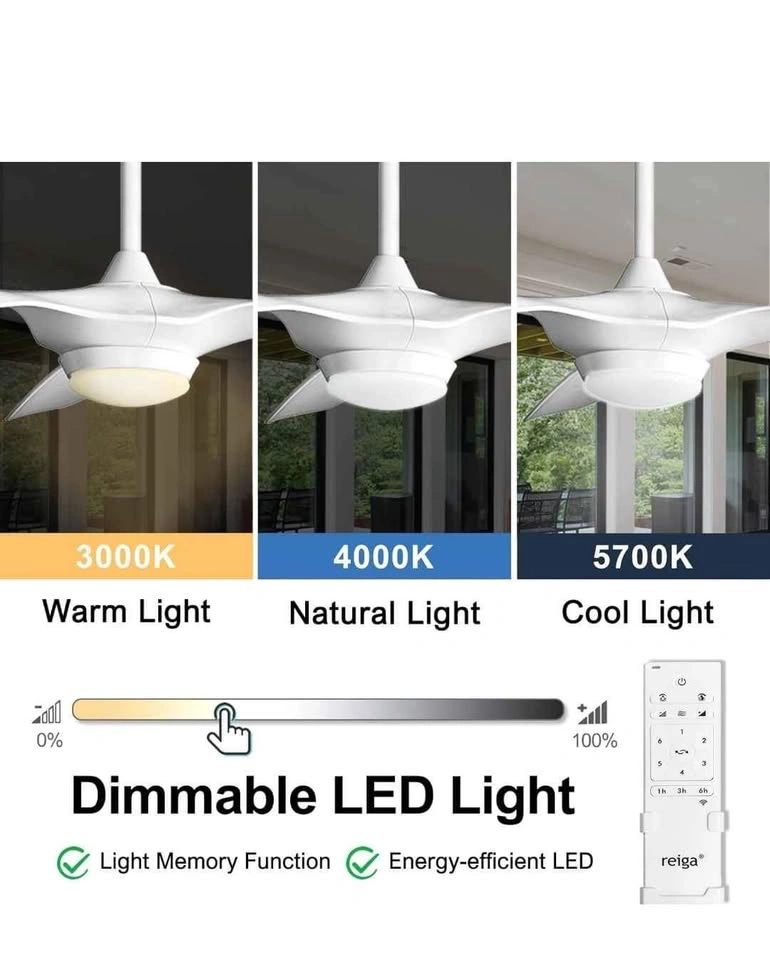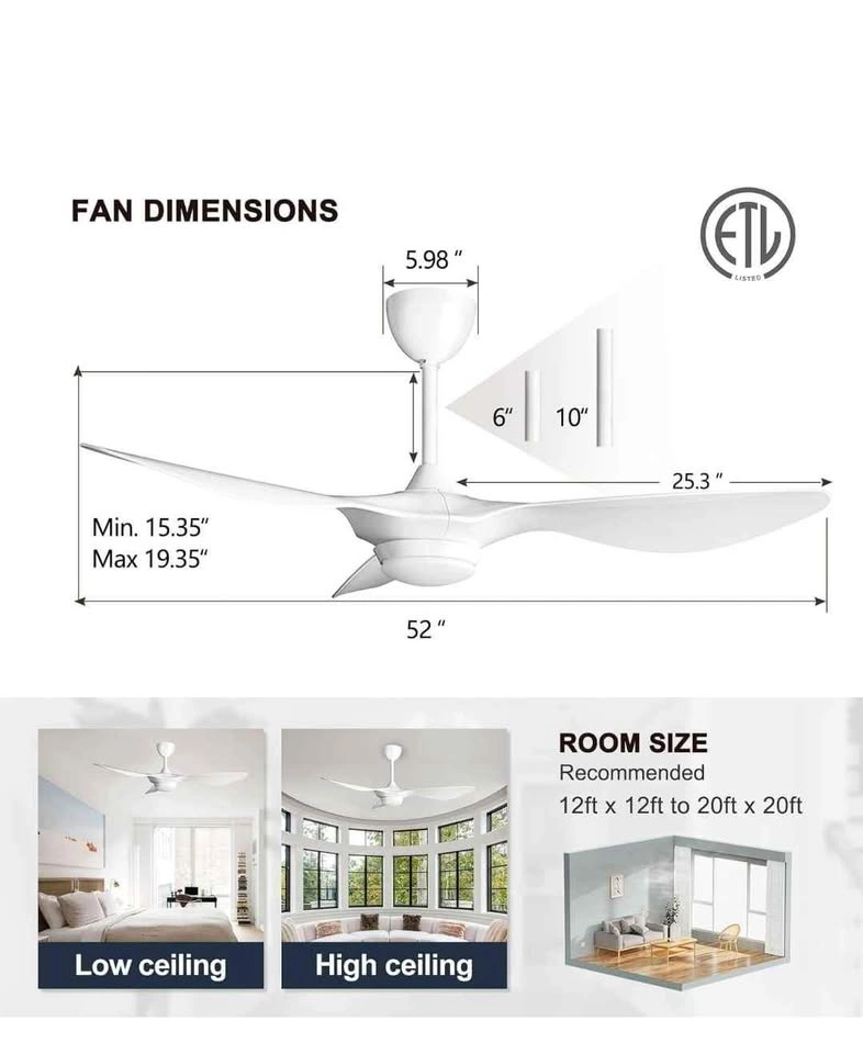 10reiga 52 Inch 3 Blade Smart Modern White Ceiling Fan with Light and Remote for Bedroom Living Room, ETL Listed Quiet DC Motor