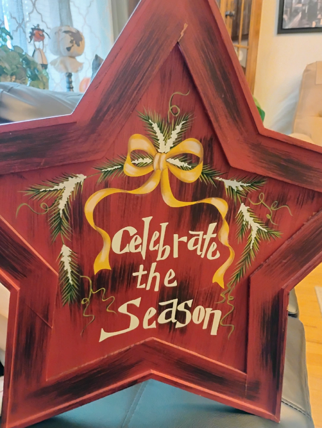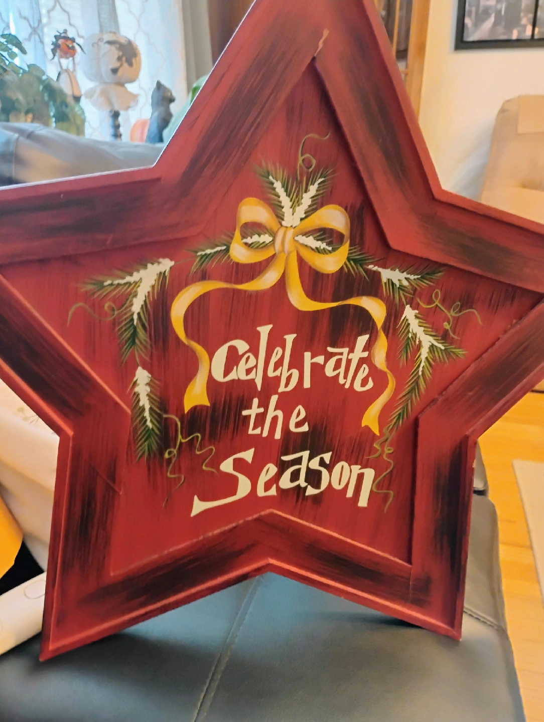 221Here's a large star shaped wooden decoration that says 'Celebrate the Season'! It's a nice red color with a painted design. The original price was $25, looking to purge & change out my decor. Come get it tomorrow, having a huge Halloween, Fall, Thanksgiving & Christmas decorations garage sale tomorrow from 9:00 am to 2pm only. We are a smoke & pet free home, deals on multiple purchases. Check out my other listings, pickup is @ 5450 66th St Maspeth blks from LIE & Grand Ave. Bedding, clothing, curtains & so much more. Many new & gently used items, unique Halloween decorations too.