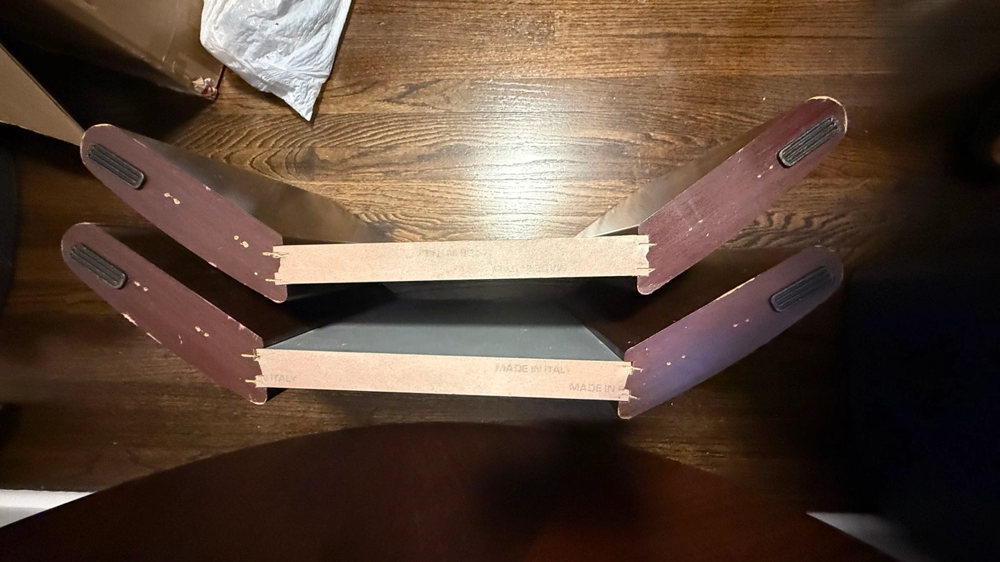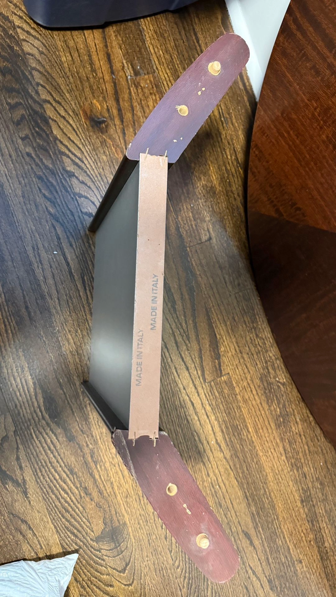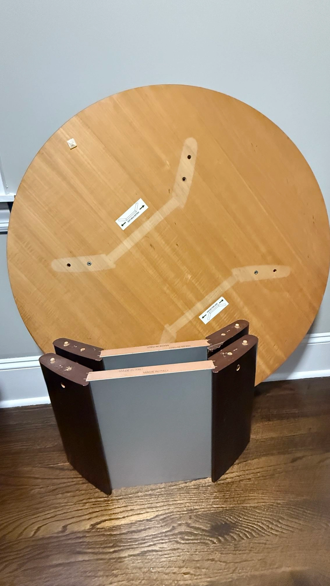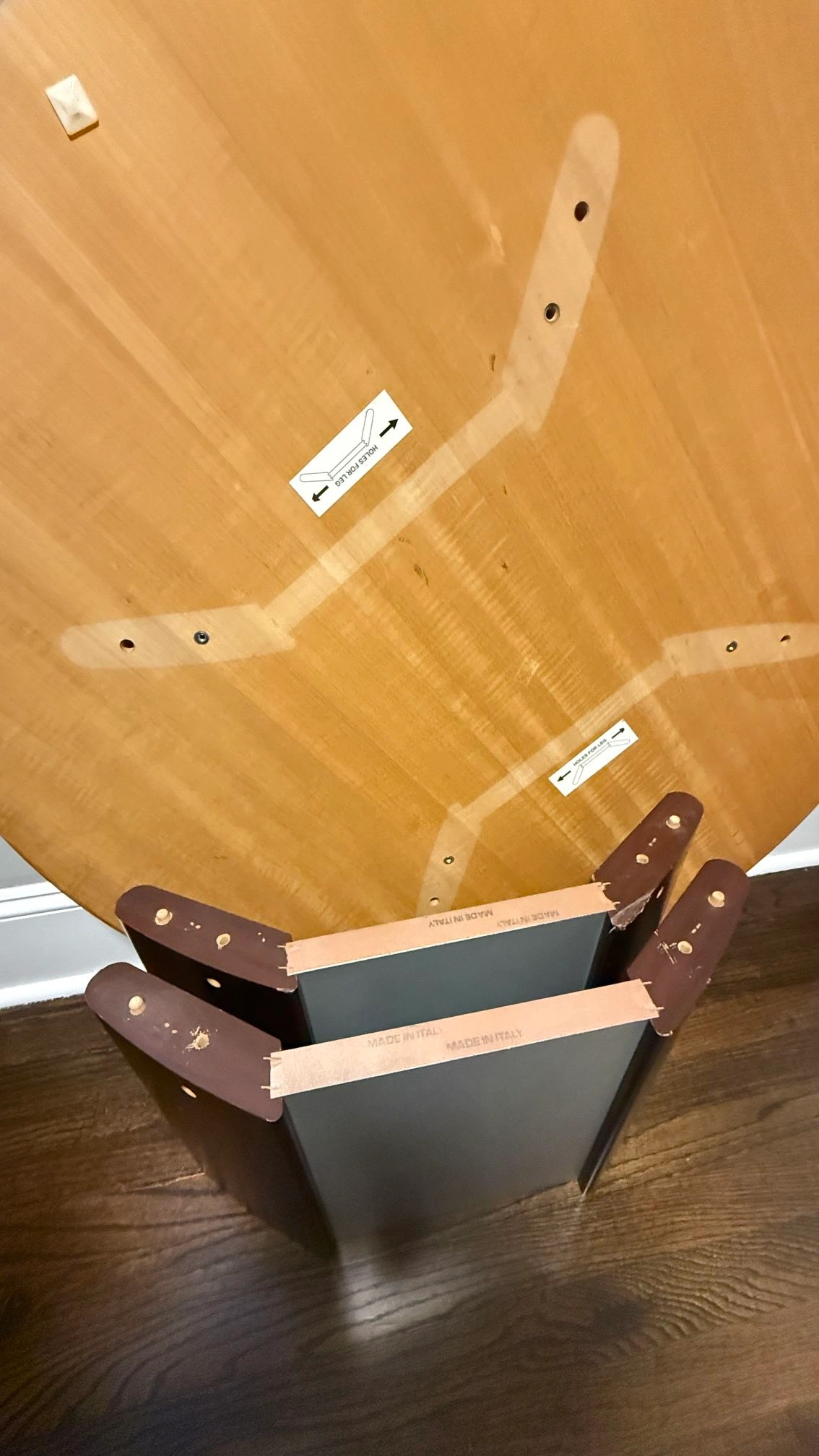 Made in Italy wood table, used. It has some scratches as you can see in the pics, but the actual table has no scratches. Pretty heavy, so if you are interested you may need some help. Brand: Made in Italy