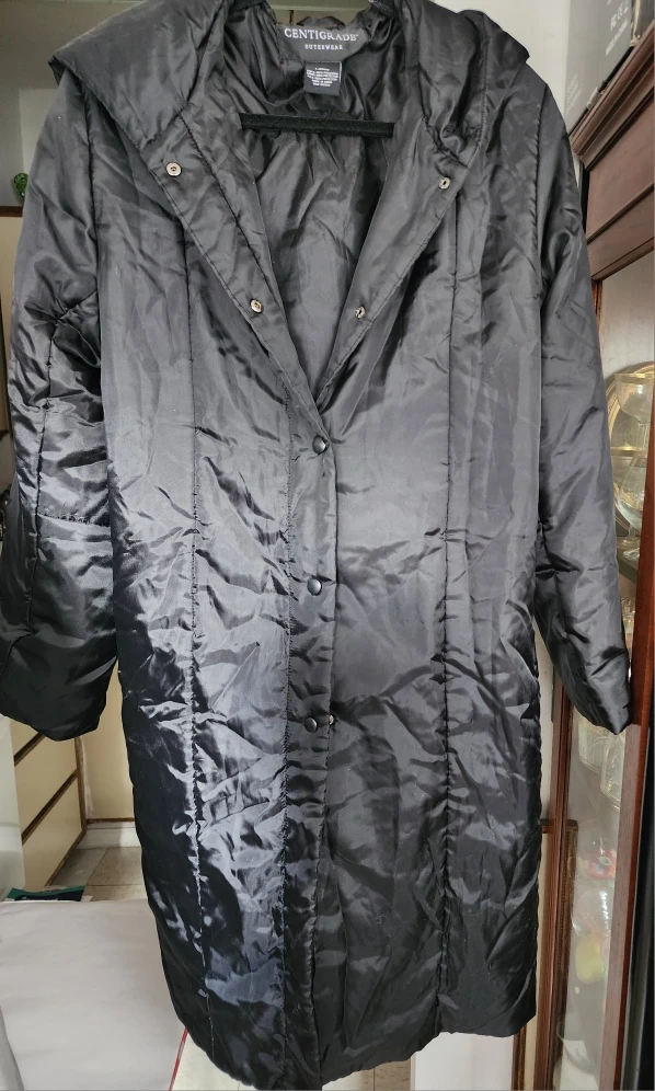 97Black Centigrade Outerwear! It's a stylish and functional piece, perfect for keeping warm. It features a button-up front and a hood $35 BUYER HAS TO PICK UP CASH ONLY