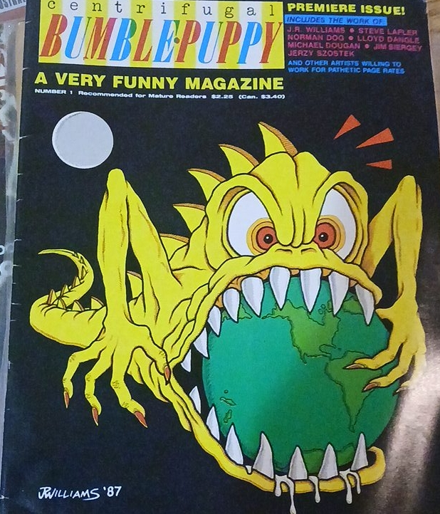 Selling a copy of Centrifugal Bumblepuppy, a very funny magazine! This is the premiere issue, number 1. Recommended for mature readers. A cool vintage find!
