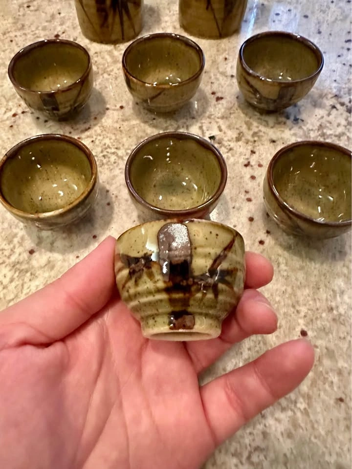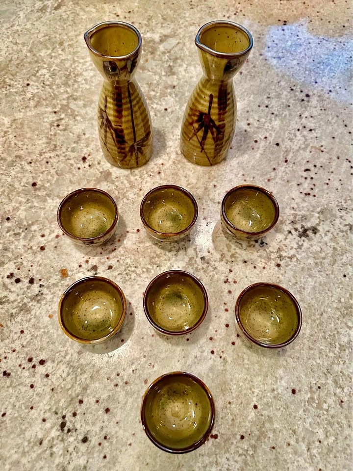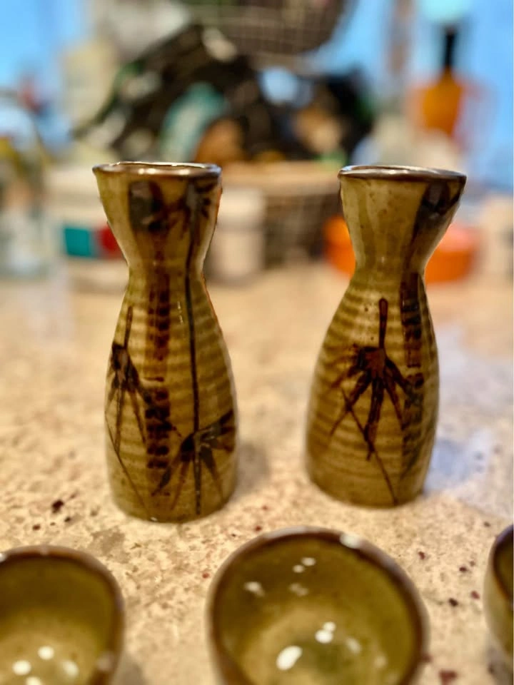 Ceramic Japanese Sake Set with Glazed Bamboo Design