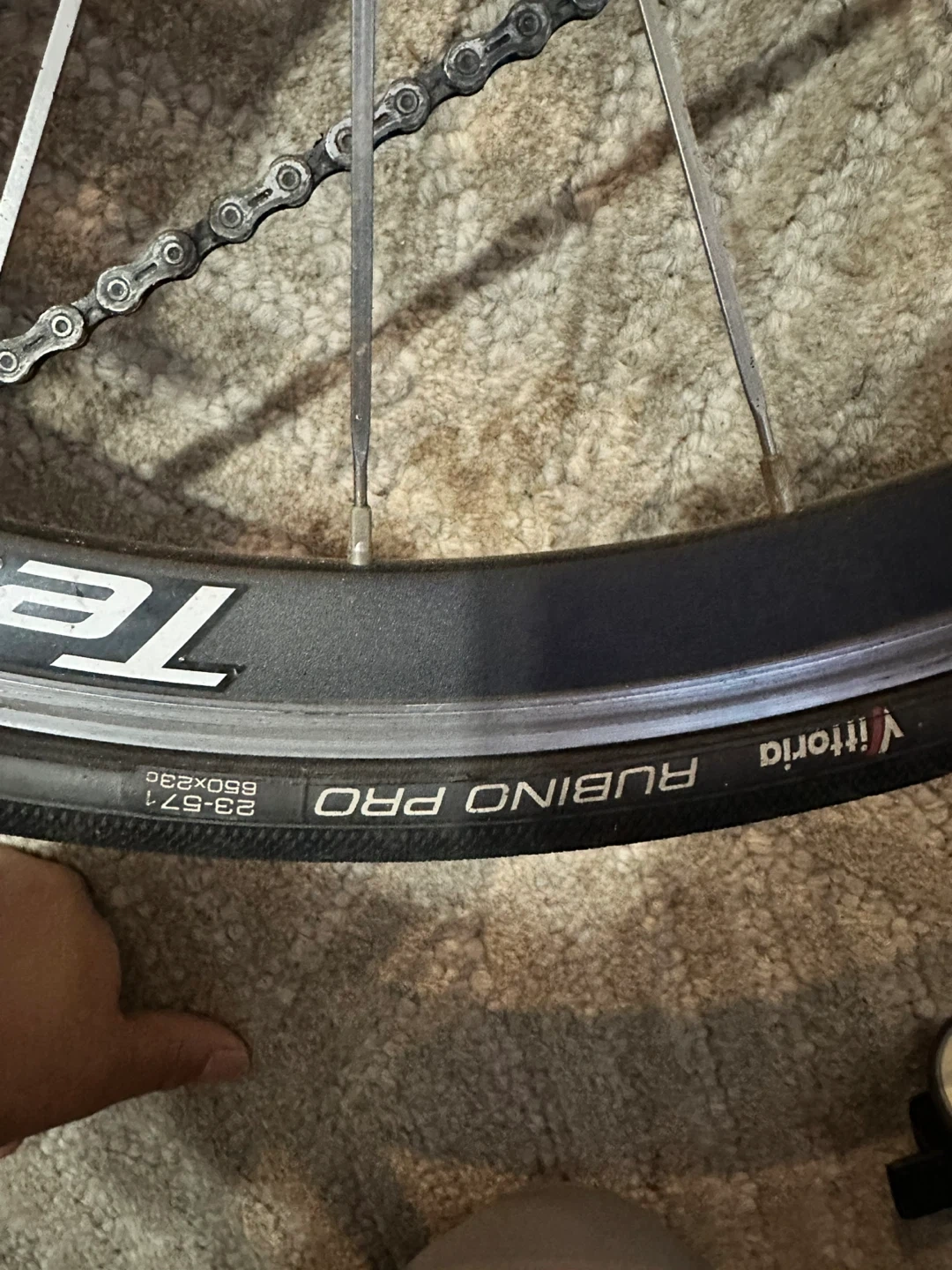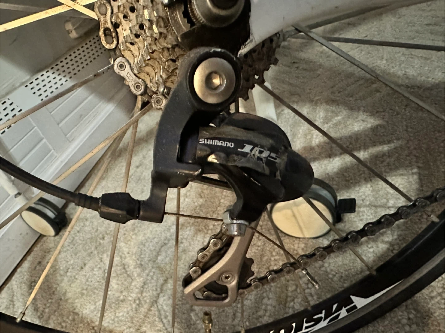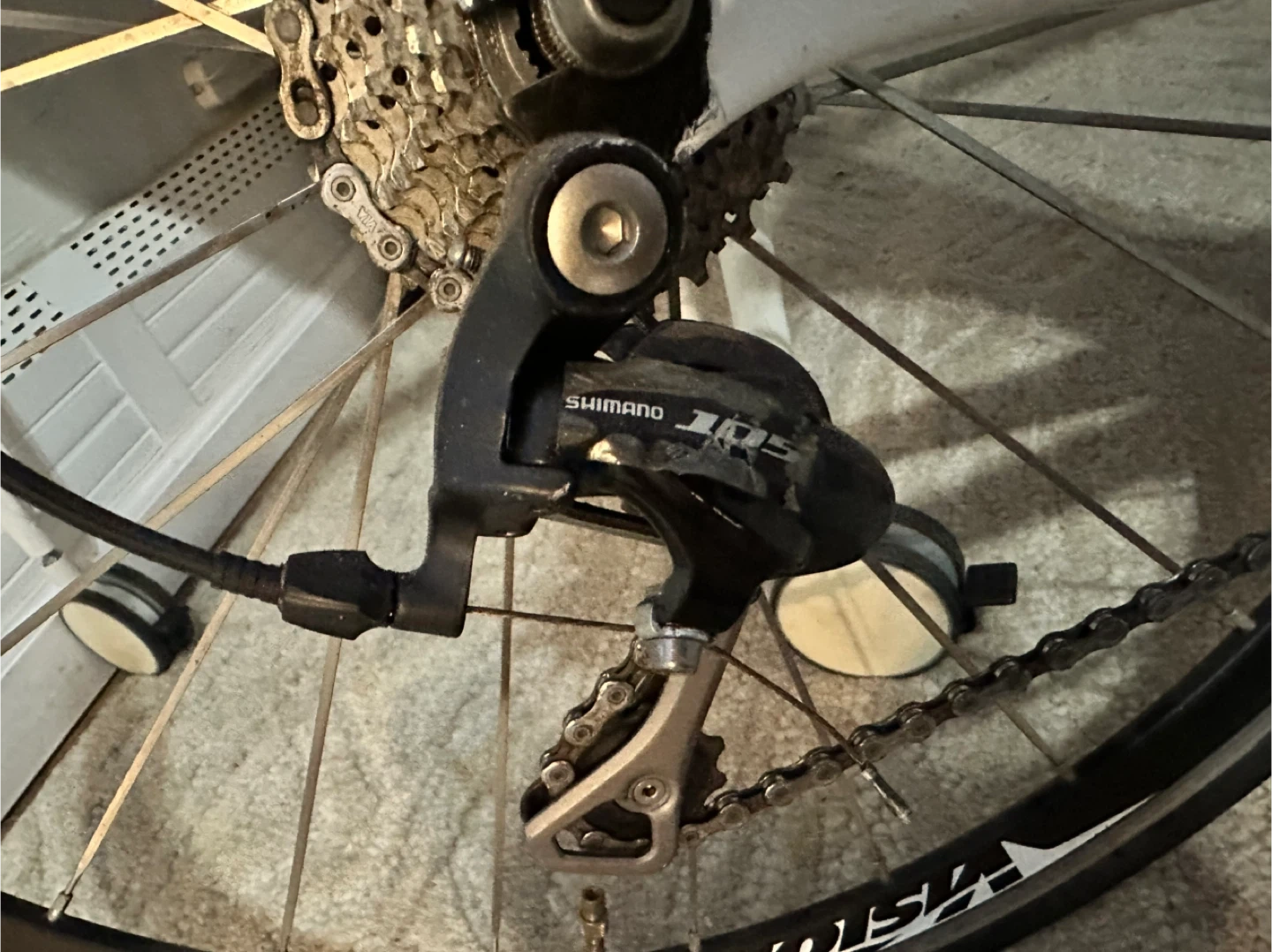 Selling a Cervelo P2 Series road bike, size 45. It has a Shimano 105 derailleur and Vittoria Rubino Pro tires. The bike is in used condition, but still has plenty of life left in it!