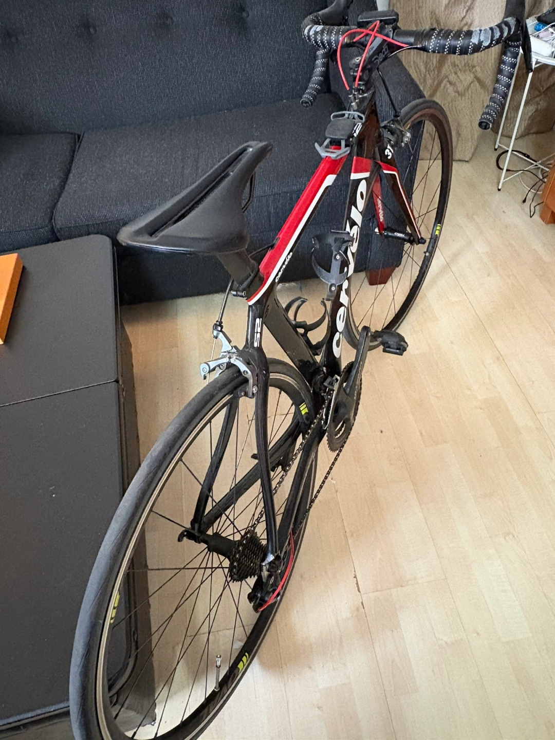 A sleek road bike, featuring a black and red color scheme. It has drop handlebars and a saddle for comfortable riding. This bike is perfect for exploring scenic routes and enjoying the outdoors at your own pace.