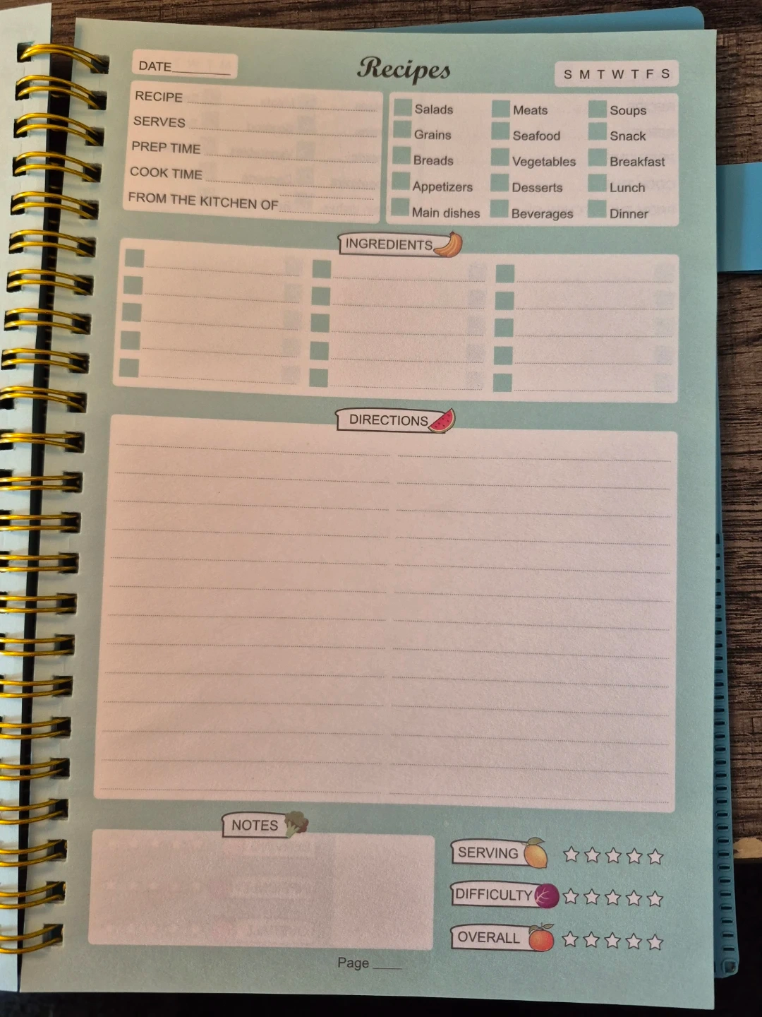 Selling a recipes spiral bound notebook. It's perfect for keeping track of your favourite recipes! It has sections for ingredients, directions, notes, serving size, difficulty, and overall rating