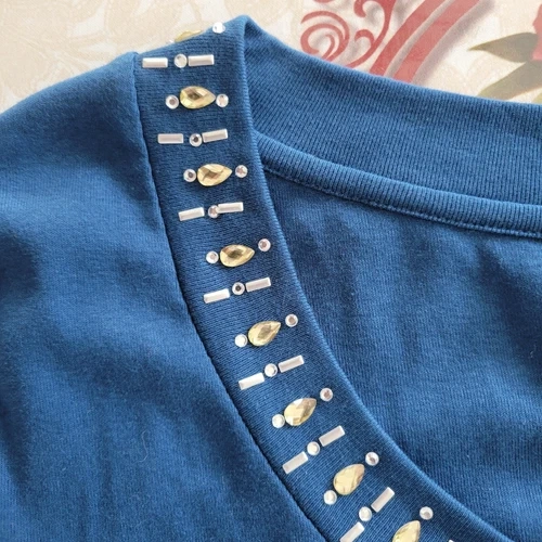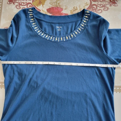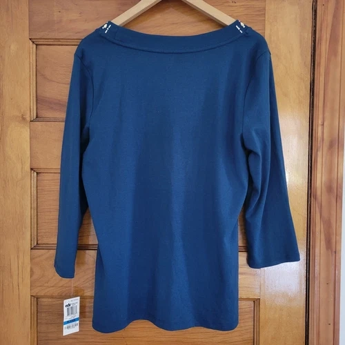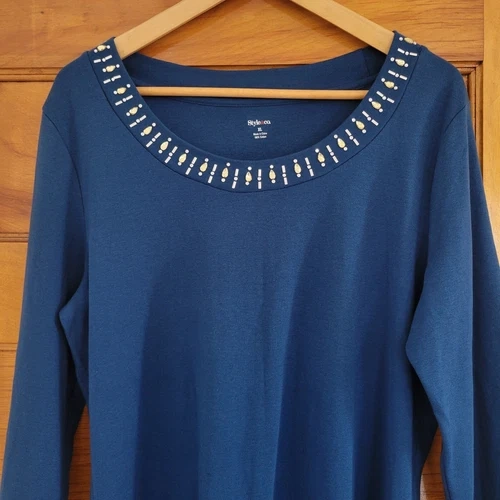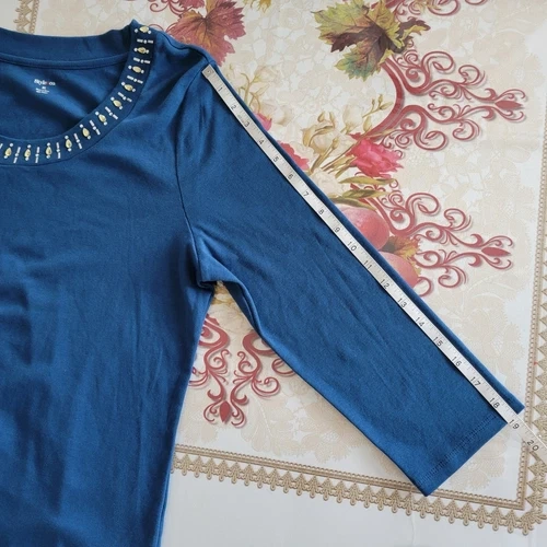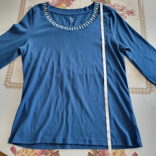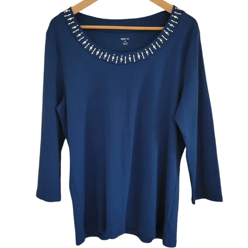 Style & Co Blouse Womens XL Blue 3/4 Sleeve Rhinestone