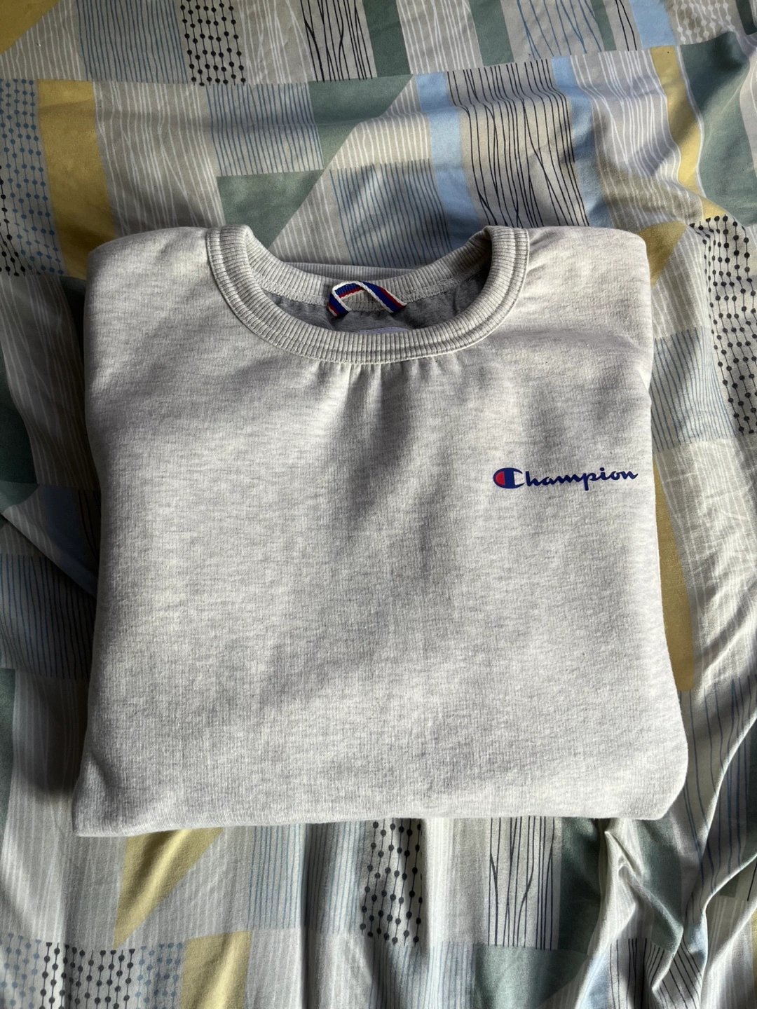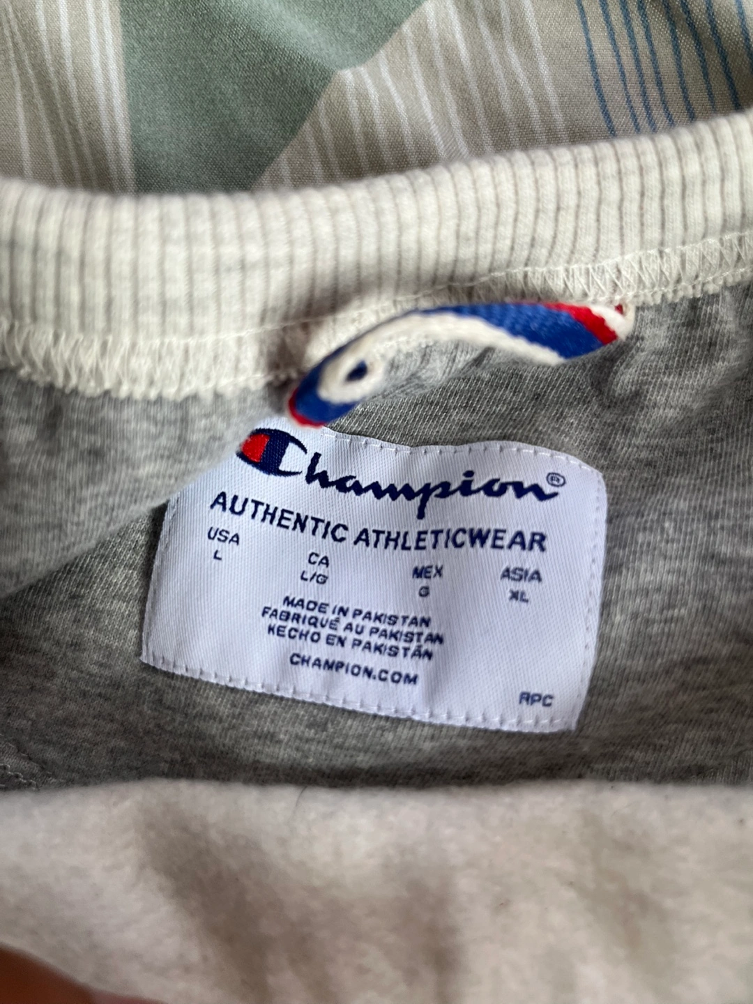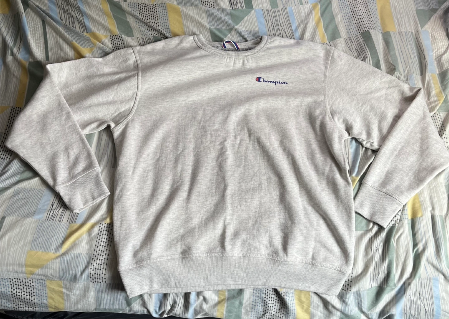 Selling a Champion Authentic Athleticwear crewneck sweatshirt in size L. It's a light gray/brown color and in good condition. Perfect for casual wear.