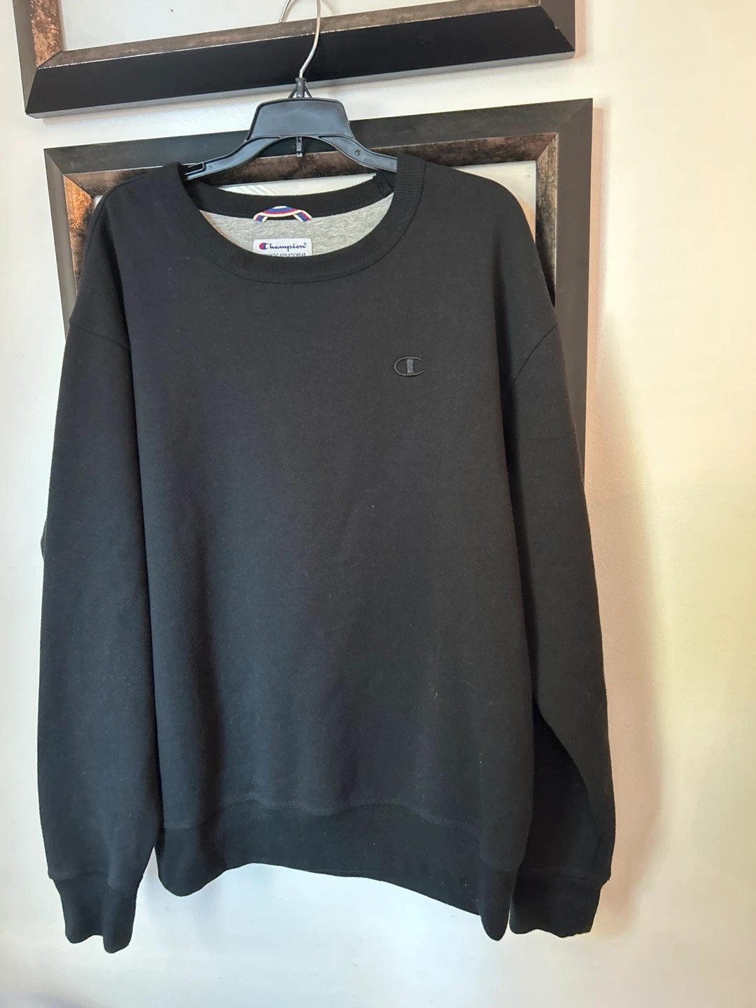 15Selling a Champion crewneck sweatshirt in black. It's a size L and in great condition! The material is soft and comfortable, perfect for everyday wear. It's a classic piece from Champion's authentic athleticwear line.