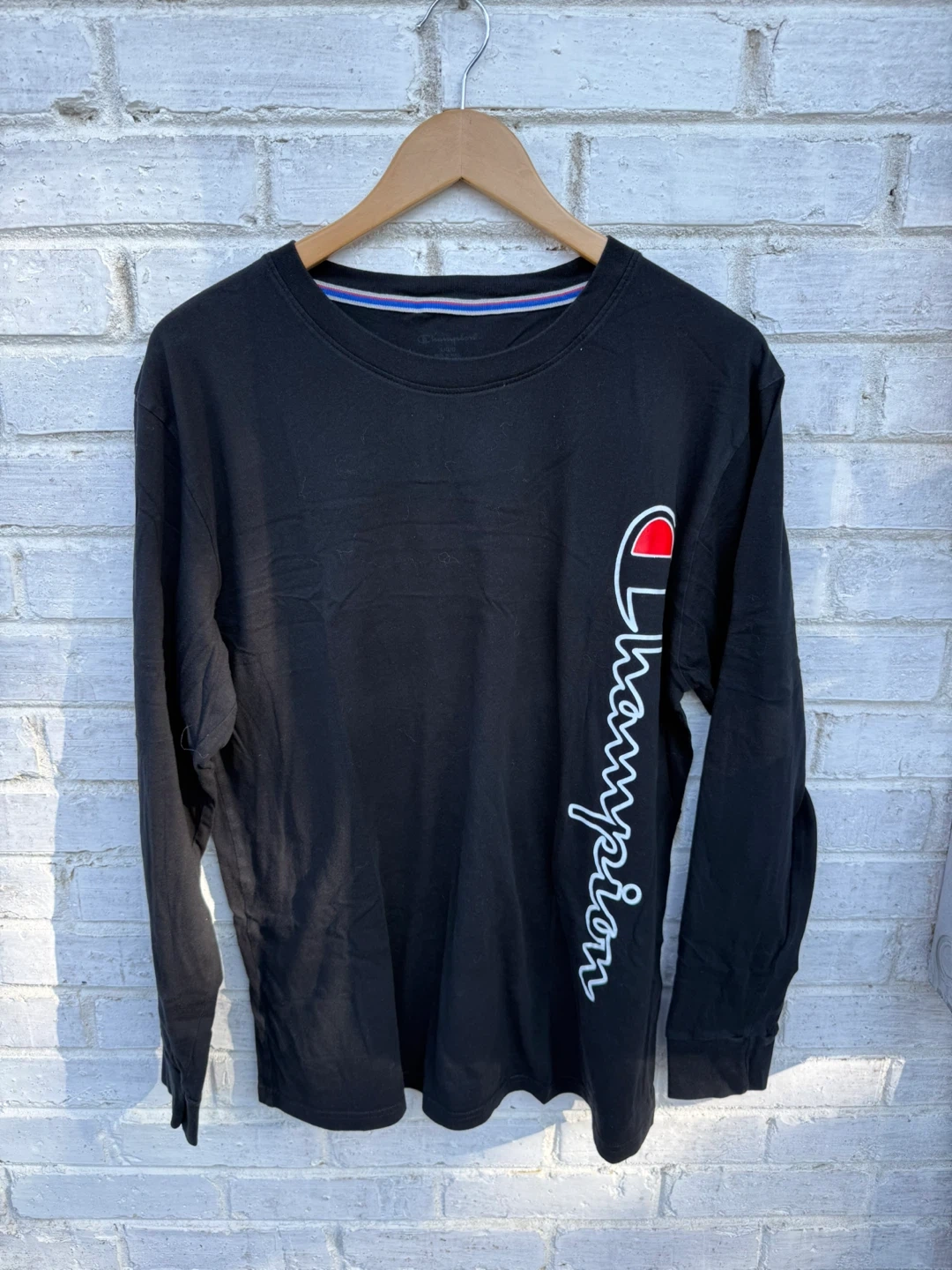 Selling a black long sleeve shirt from Champion. It features the Champion logo down the side. The shirt is in good condition and ready for a new home!