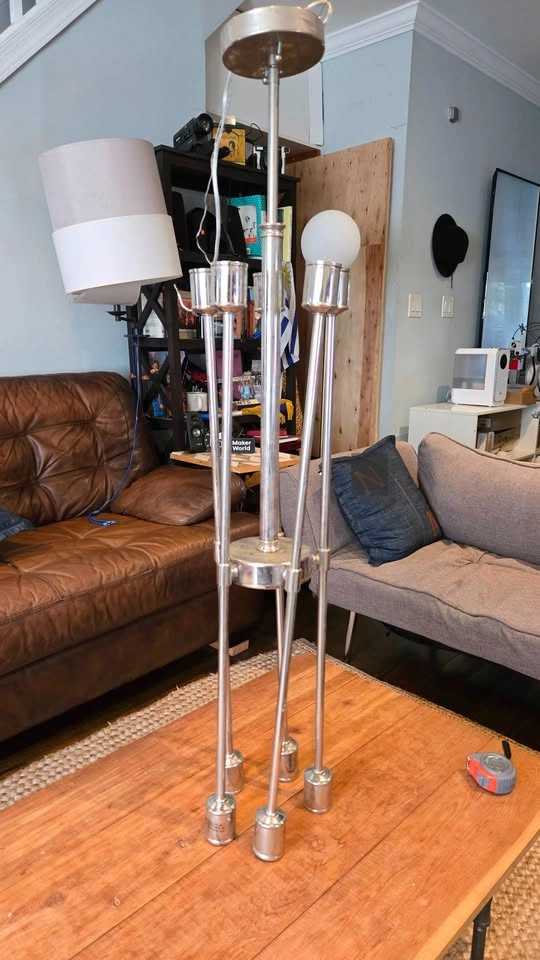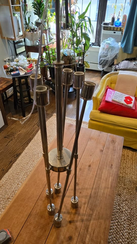 10Striking modern chandelier in polished nickel finish from Elegant Lighting (Model LD8018D28PN). Features ten lights (E26 base, max 60W each), cross-arm "Sputnik" design— perfect statement piece for living room, loft, or dining area. Dimensions: 27.2 "W × 32.5 "H. Includes hanging chain and hardware. Excellent used condition; all ten sockets have been tested and are working. Originally $240 new; asking just $119.99 OBO for quick sale! Pickup in Bushwick . J or L train. Feel free to message with questions or straight offers